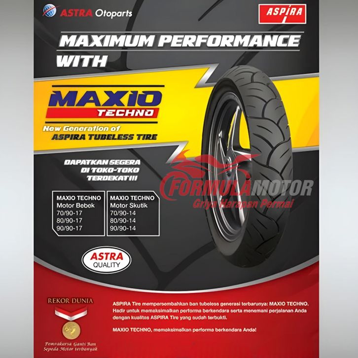 80/90-17 + 90/90-17 Aspira Maxio Techno Ring 17 Tubeless (Hard Compound) Sepasang Ban Motor Bebek Tubles