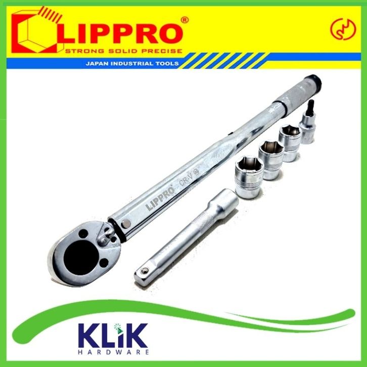 KUNCI TORSI MOMEN LIPPRO 1/2" INCH TORQUE WRENCH 28 - 210NM / GAGANG MATA SOCK SHOCK SOK SOCKET STAR BIT EXTENSION