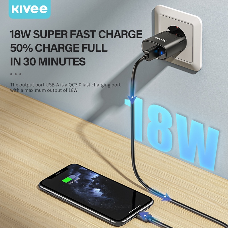 KIVEE CHARGER KEPALA CHARGER FAST CHARGING 18W QUICK 3.0 ORIGINAL WALL CHARGER 3.1A 1 TAHUN GARANSI