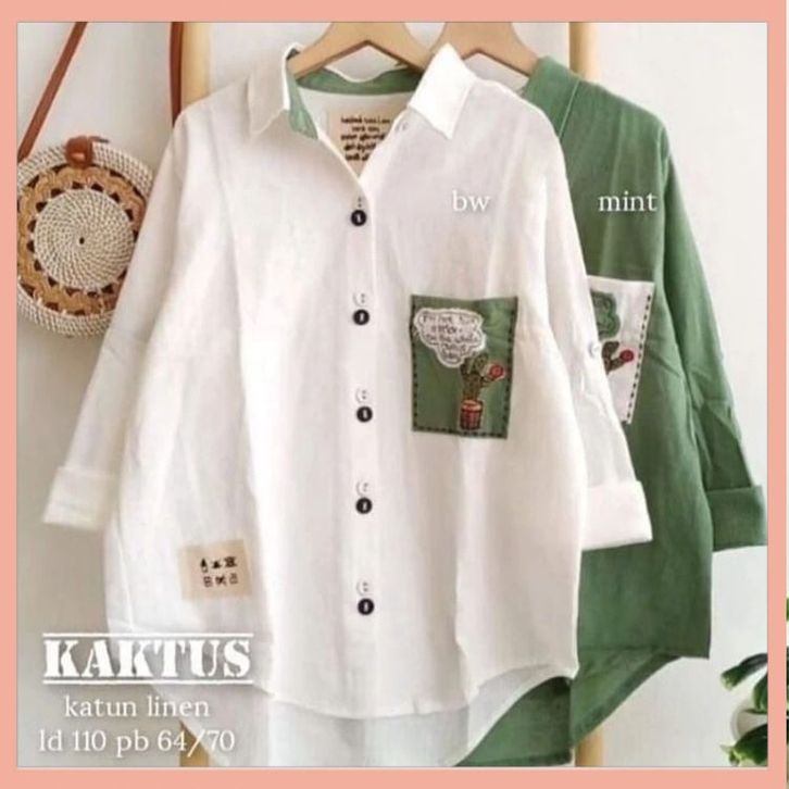 [Mall] Vallina Outfit - Kaktus Shirt Blouse Path Embroidery Linen Rami Baju Atasan Wanita Muslim Tunik Premium M - XL