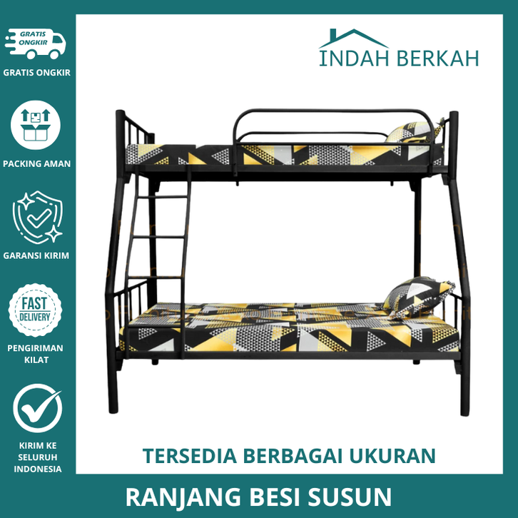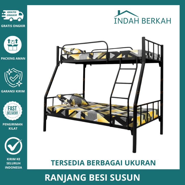 RANJANG SUSUN 2 TINGKAT TEMPAT TIDUR BESI DEWASA 90X200 120X200 MINIMALIS ORIO BUNKED BED KASUR KOKOH MURAH TANPA DP