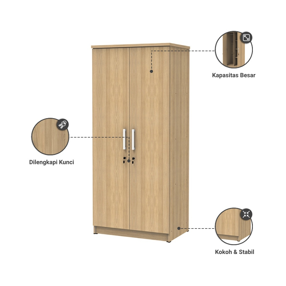 [Star] Lemari Pakaian Kayu Minimalis Modern 2 Pintu Lemari Baju Kamar Tidur Desain Natural
