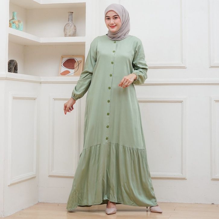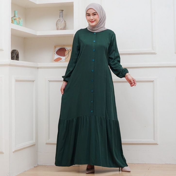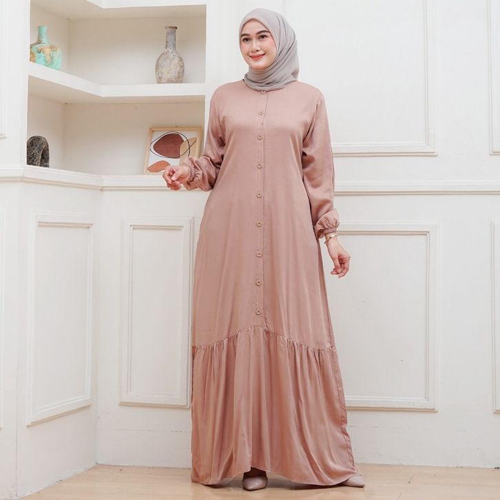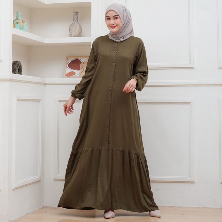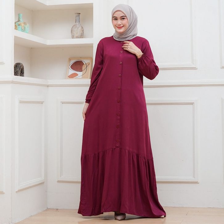 GAMIS CASANDRA BASIC WANITA POLOS RAYON TEBAL SETELAN BUSANA MUSLIM RAYON TWILL BUSUI KANCING DEPAN SIZE M L XL XXL