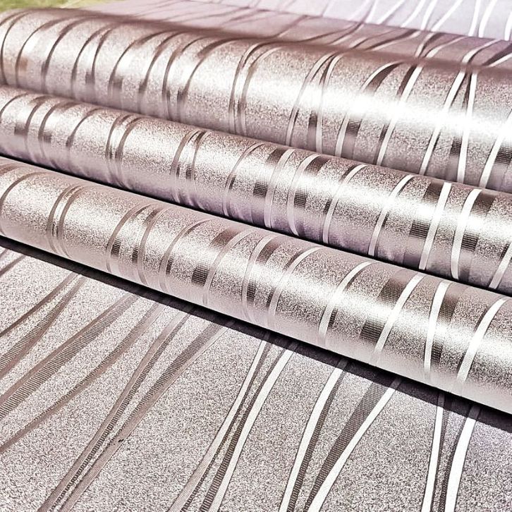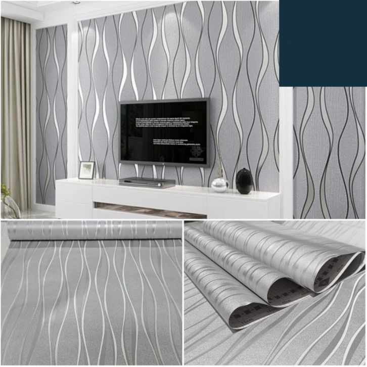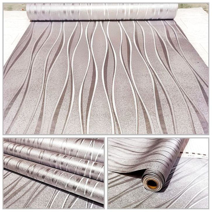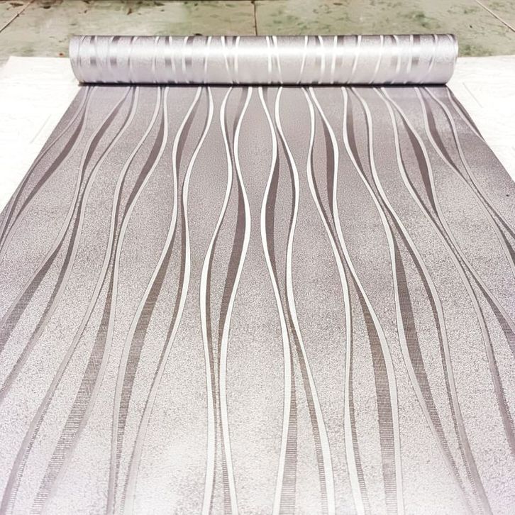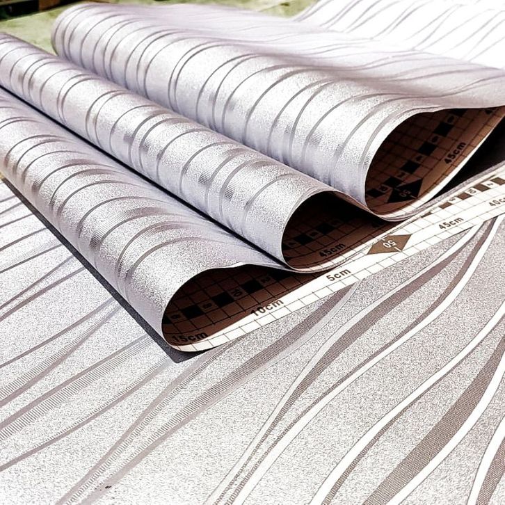 WALLPAPER STICKER DINDING SILVER GARIS GELOMBANG SALUR MINIMALIS