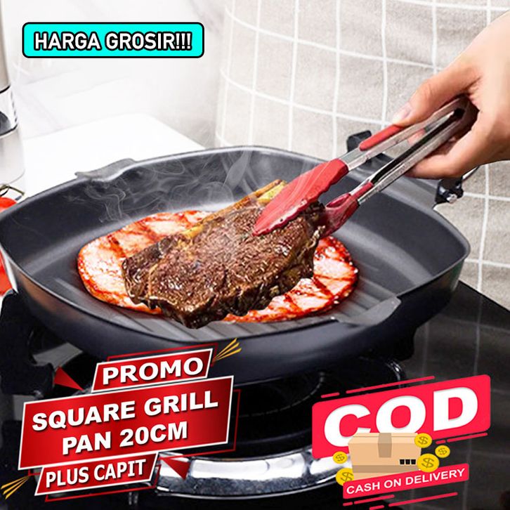 Pemanggang Square Grill Pan 20cm Alat Panggang Grill Pan Wajan Panggangan Bakaran Grill Dimsum Seafood Food Telur Burger
