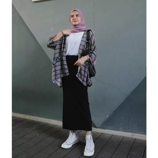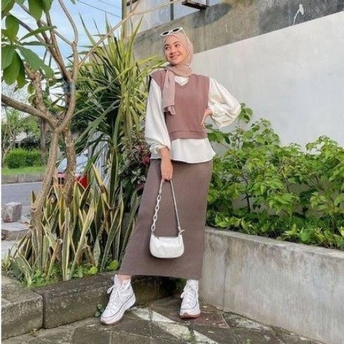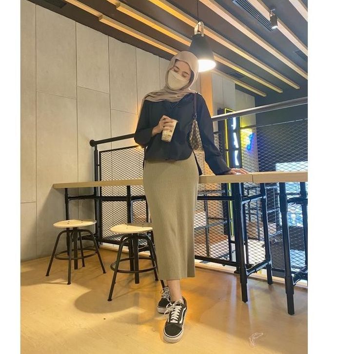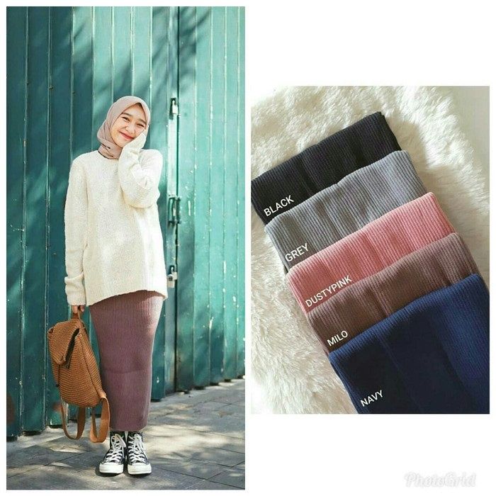Rok Rajut Cantik Wanita Span Knit Panjang Fashion Pakaian Cewe Bawahan Kasual Outfit Santai Midi Skirt Motif Polos Tebal