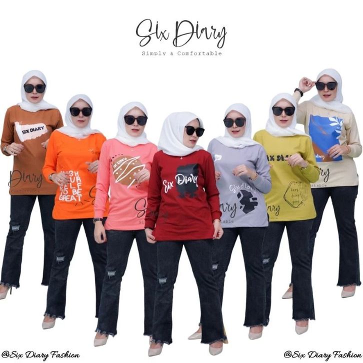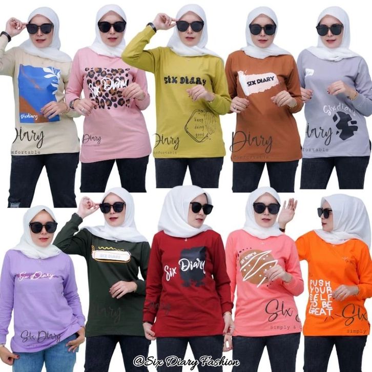 Kaos wanita lengan panjang jumbo model terbaru six diary style zolaqu atasan kaos wanita kekinian kaos wanita jumbo
