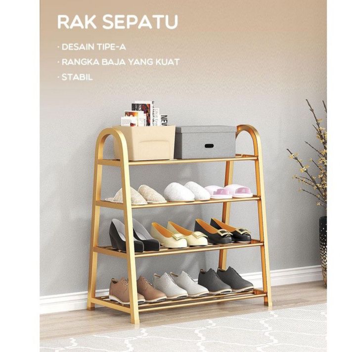 RAK SEPATU 4 SUSUN BAJA TYPE BENTUK A SERBAGUNA TINGGI TAHAN LAMA