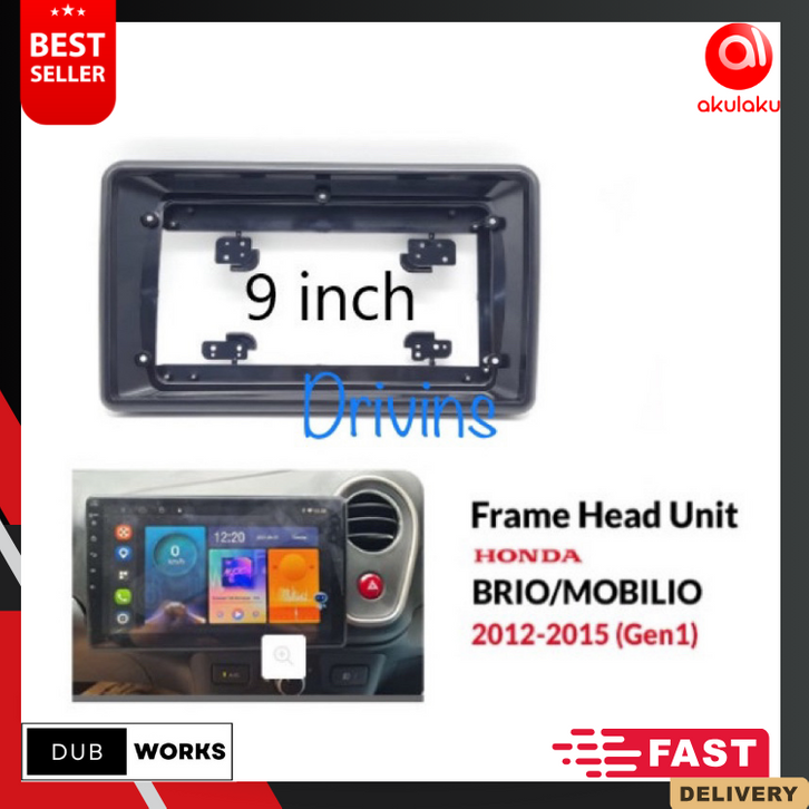 Frame Head Unit Double Din Android Honda Brio / Mobilio 9” Inch 2012-2015