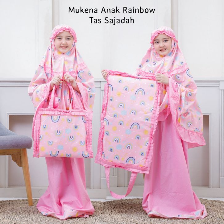 TERMURAH Pusat Mukena Indonesia - Mukena Anak Rainbow Pink Tas Sajadah FREE ONGKIR