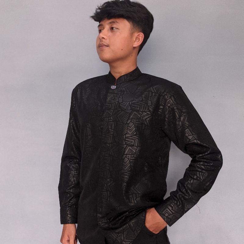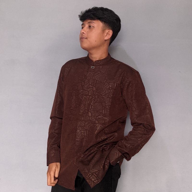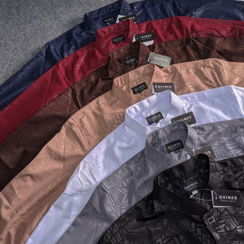 QUINZO - KEMEJA KOKO EMBOS PRIA SLIMFIT LENGAN PANJANG KOKO KEMEJA BAJU LEBARAN