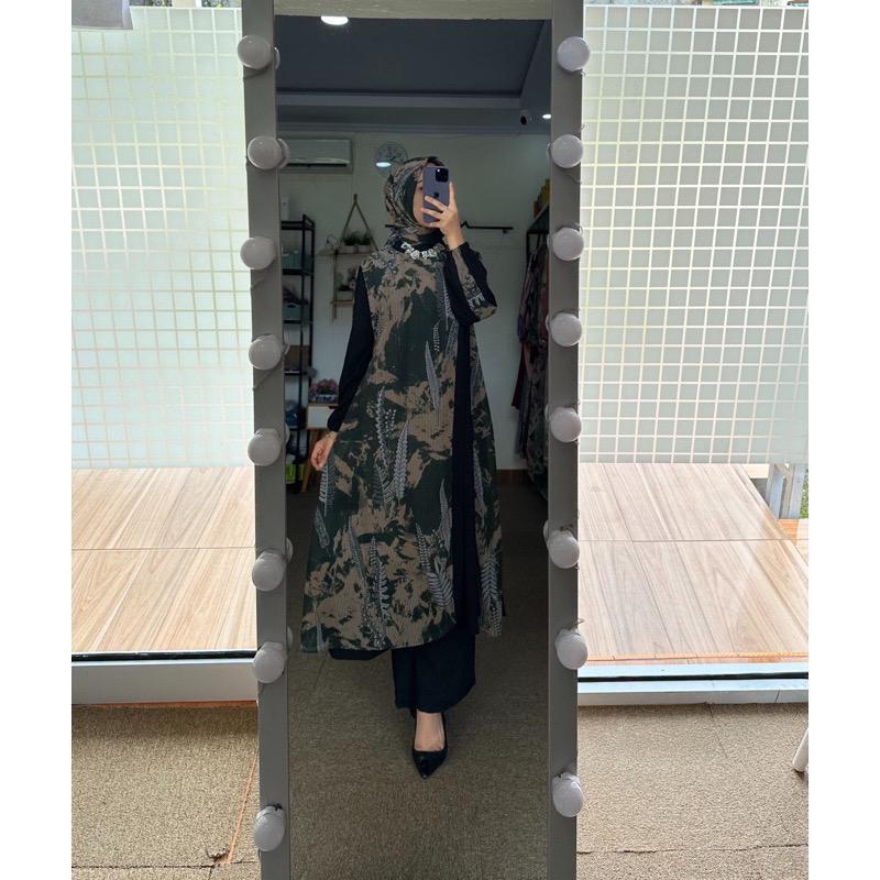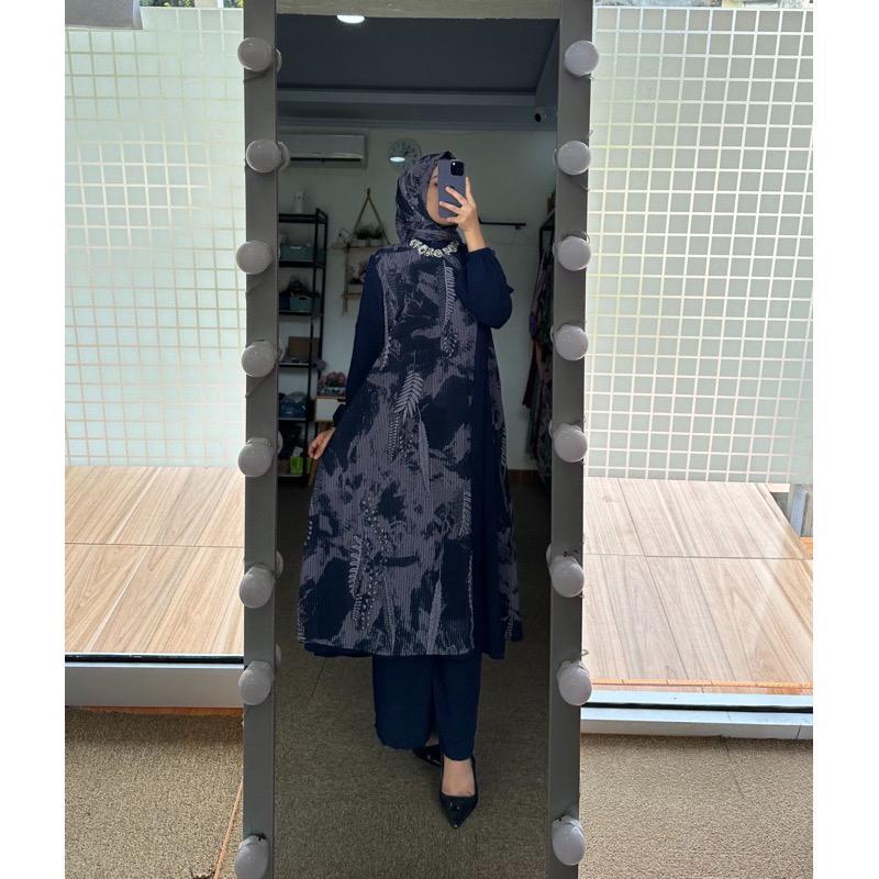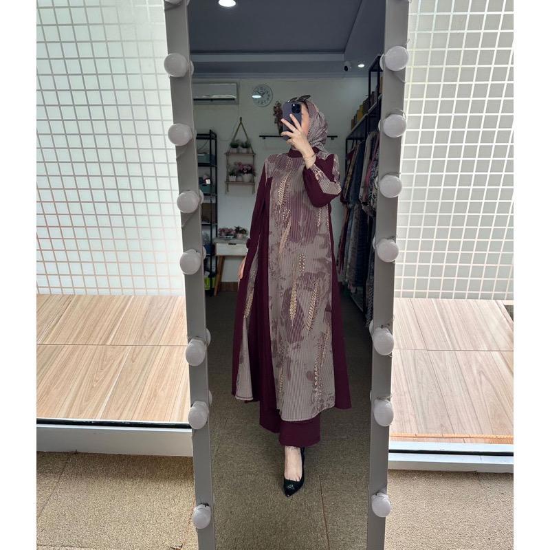 AMEL - SETELAN MIDI SET HIJAB 3 IN 1 DIANTI TUNIK CERUTY DAN CRINGKLE ONESET KULOT CRINGKLE BUSUI JUMBO