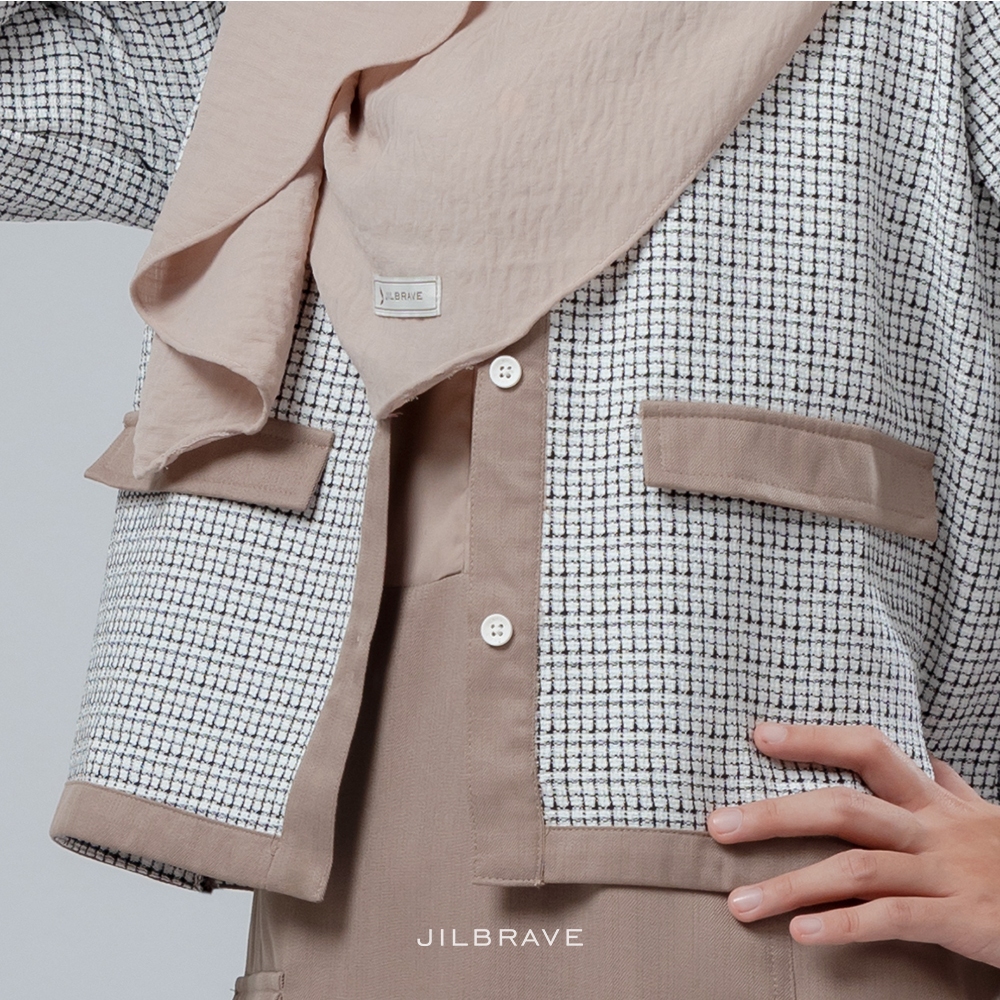 JILBRAVE AUREEN DRESS GAMIS WANITA OUTER BLAZER TWEED ALA KOREA SMART CASUAL LOOK OUTFIT GIRLBOSS STYLE