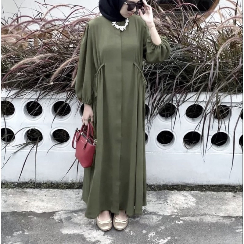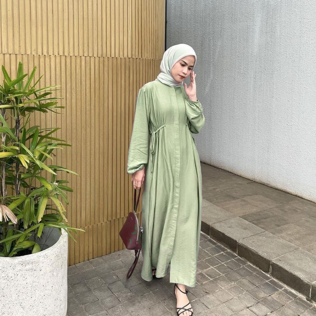 HAZEL MIDI DRESS POLO LINEN TALI PINGGANG- GAMIS TERBARU- GAMIS WANITA