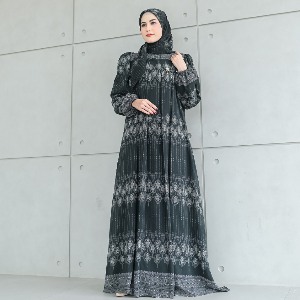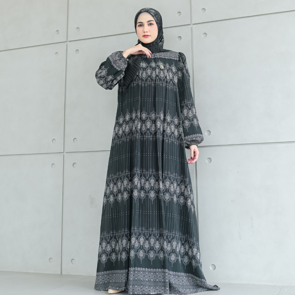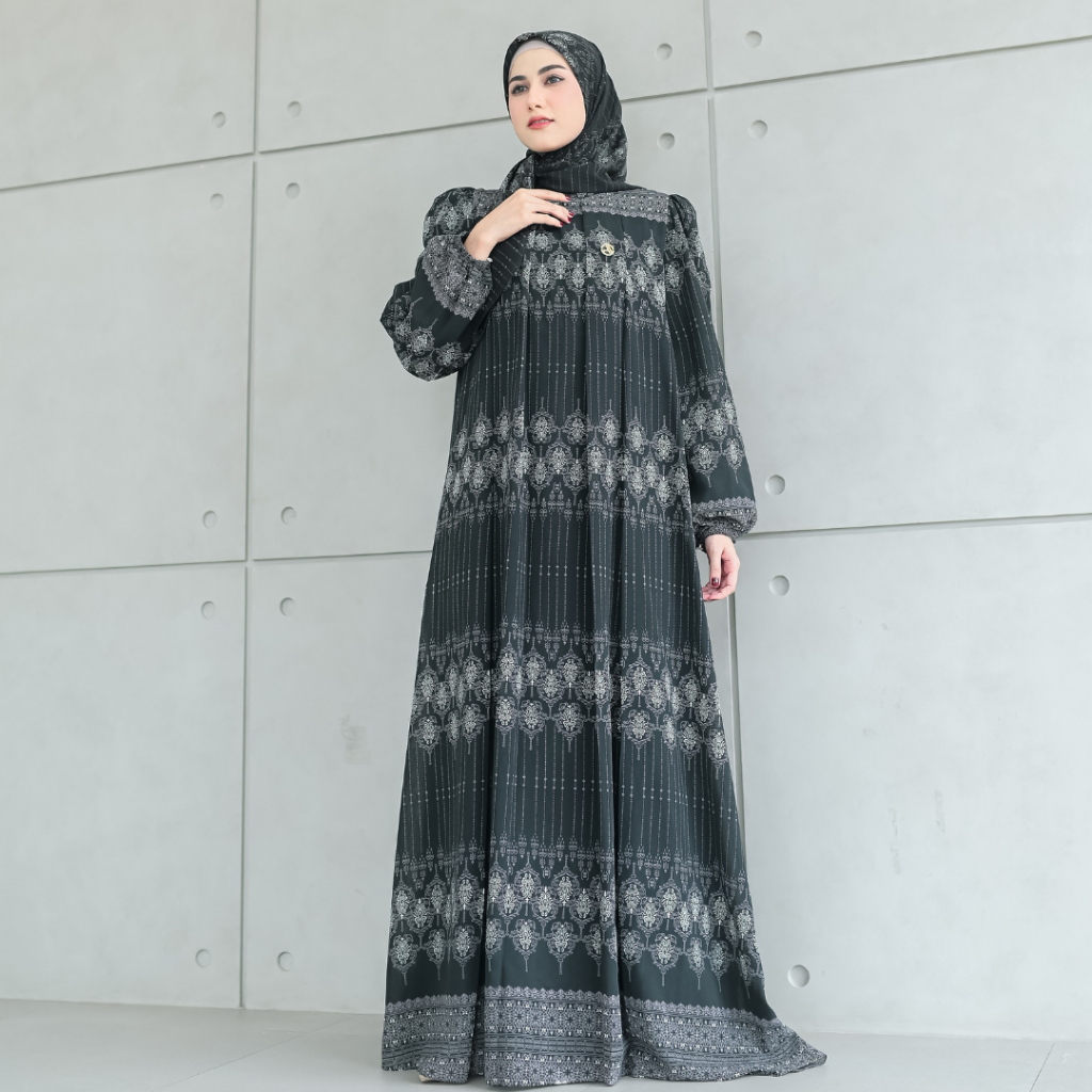VANIA SET SERIES 70 PASHMINA SEGIEMPAT BAHAN CERUTI MOTIF PRINTING FULL FURING GAMIS WANITA ELEGAN TANGAN BALON