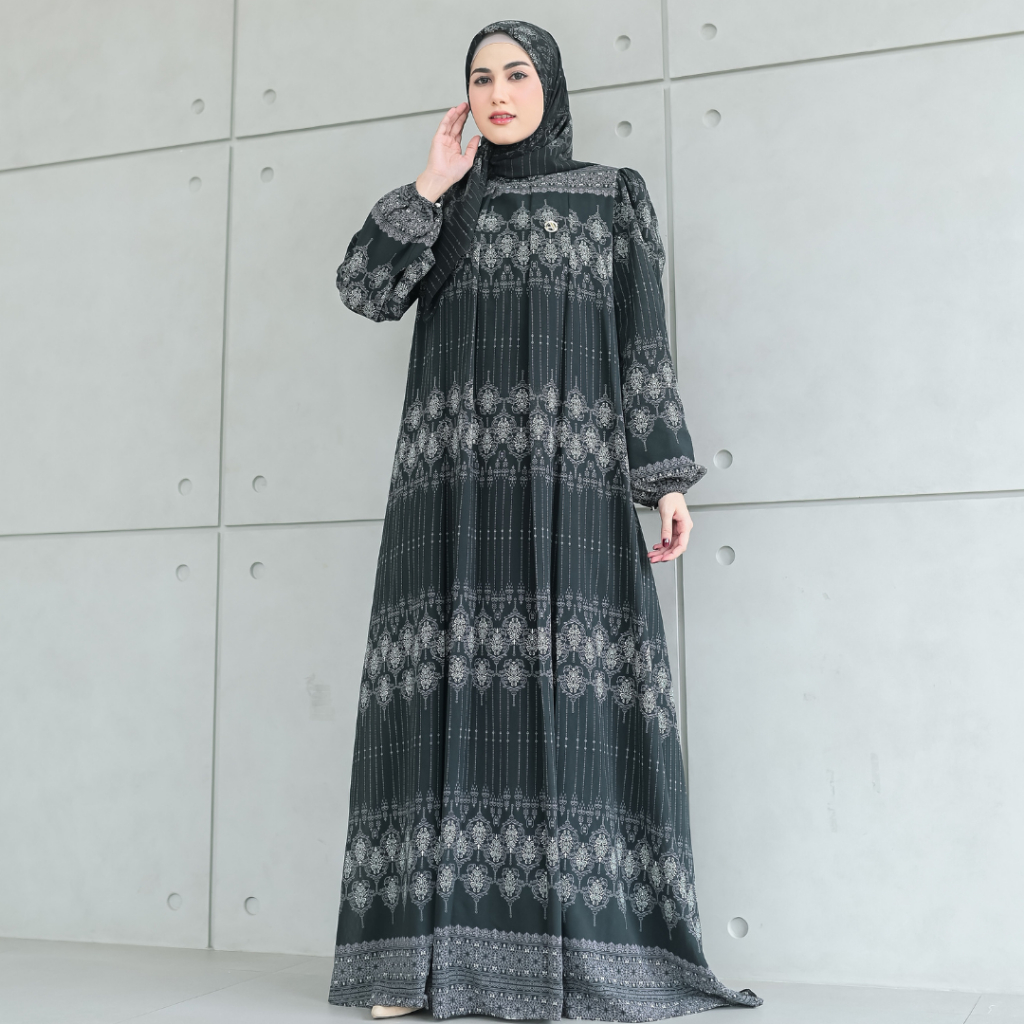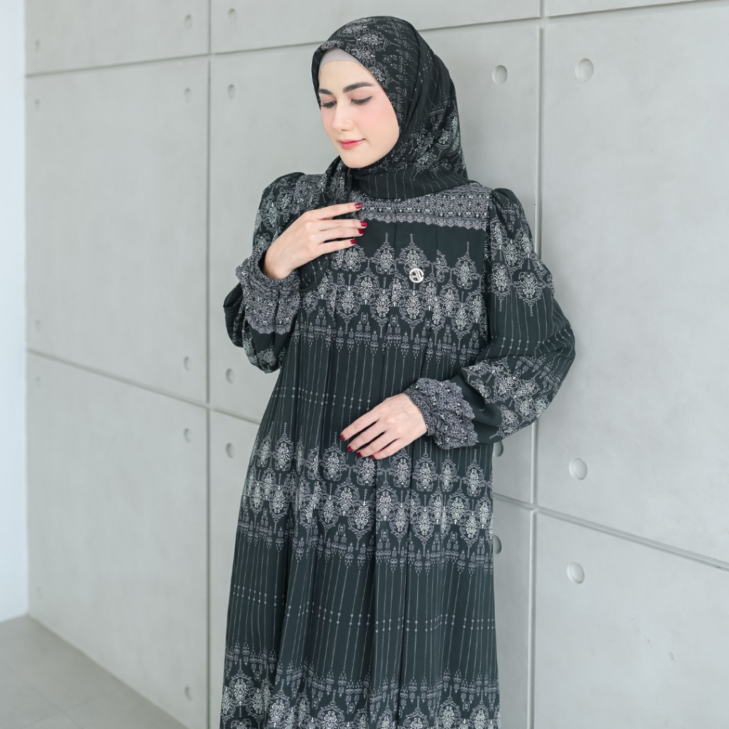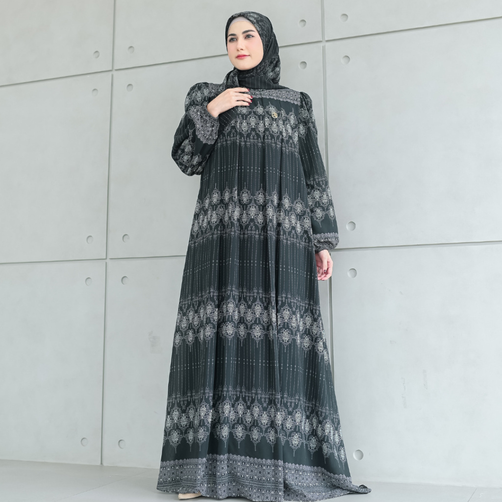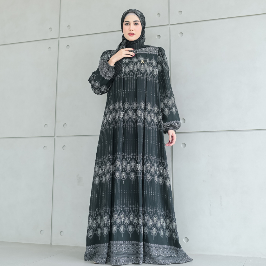 VANIA SET SERIES 70 PASHMINA SEGIEMPAT BAHAN CERUTI MOTIF PRINTING FULL FURING GAMIS WANITA ELEGAN TANGAN BALON