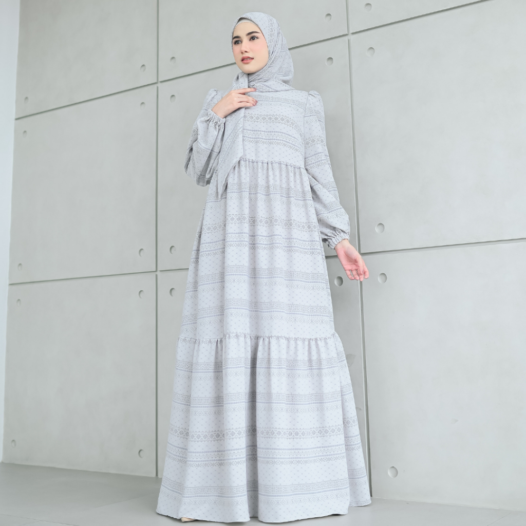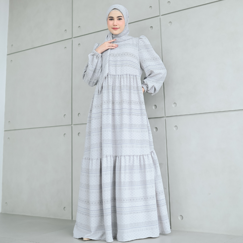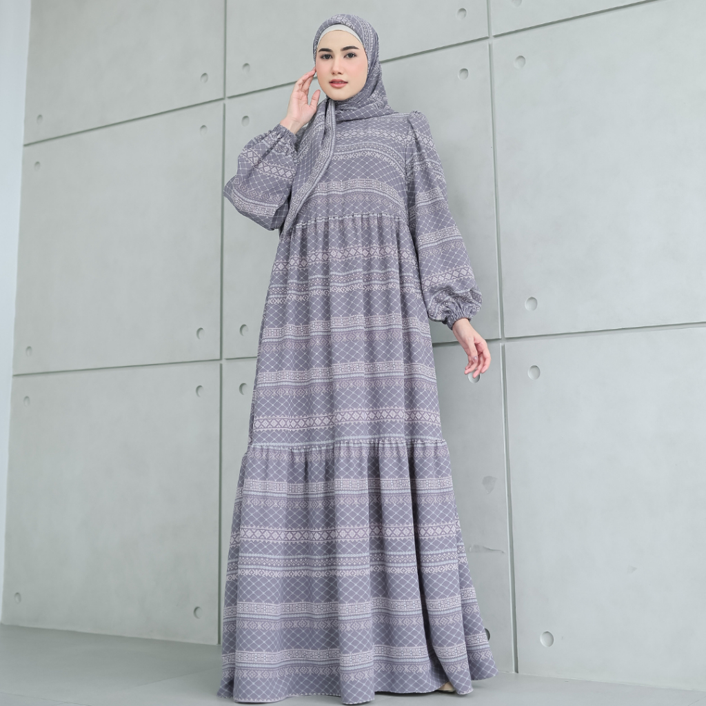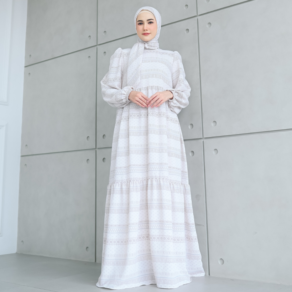 SHANUM SET SERIES PASHMINA SEGIEMPAT BAHAN BONITA DRESS GAMIS WANITA MOTIF TANGAN BALON KERUT BERUMPAK