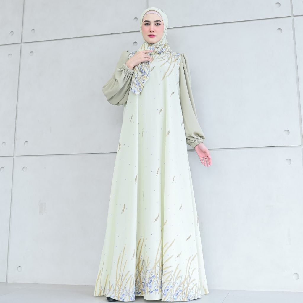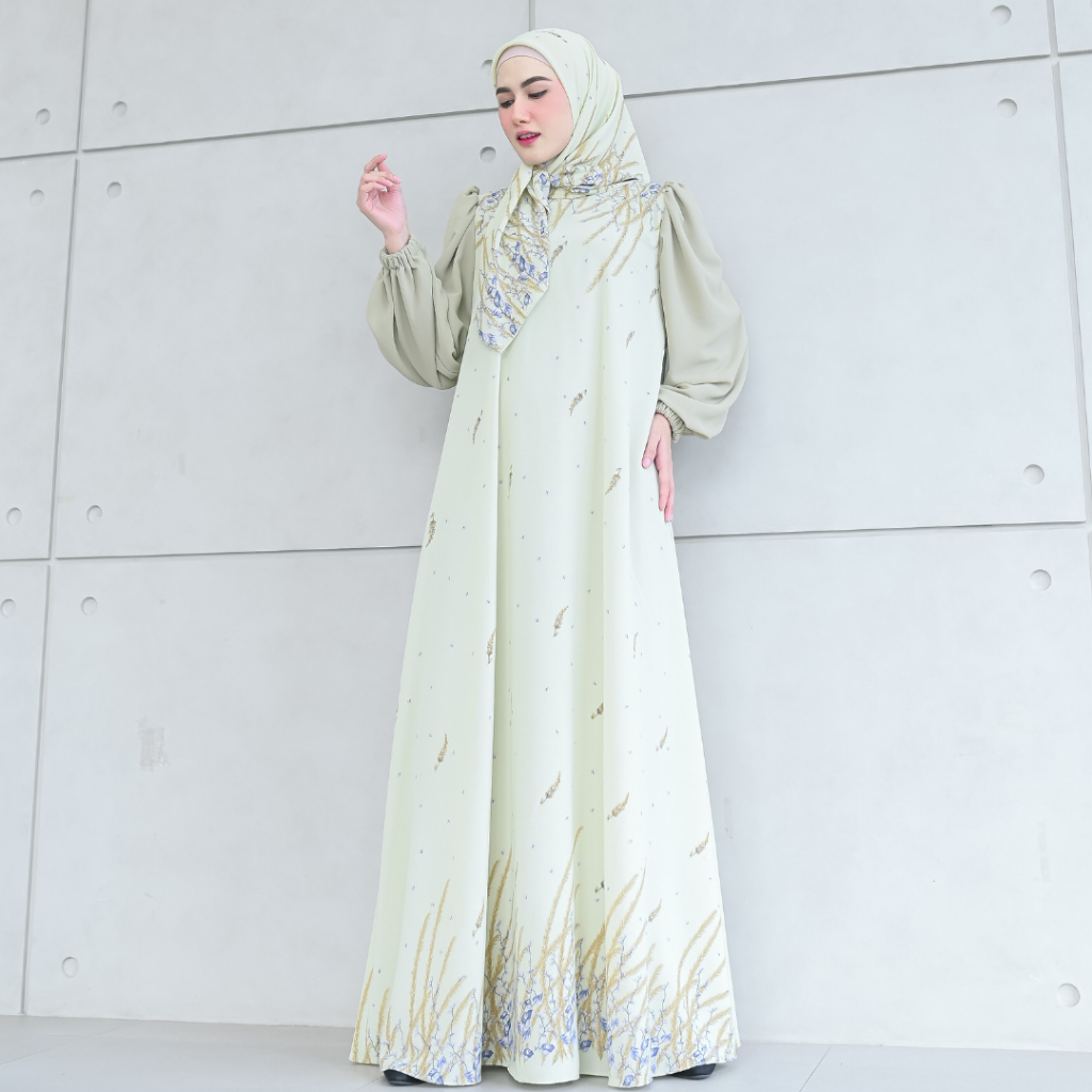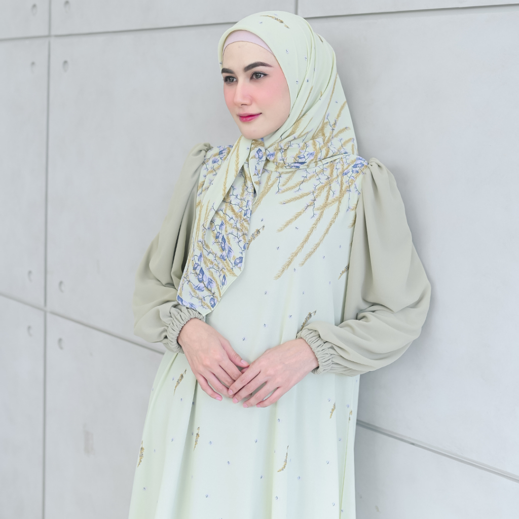 NAISHA SET SERIES 24 & 27 PASHMINA SEGIEMPAT BAHAN CERUTI MOTIF PRINTING FULL FURING GAMIS WANITA ELEGAN TANGAN BALON