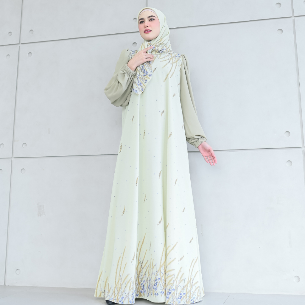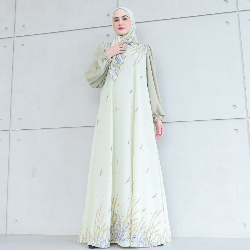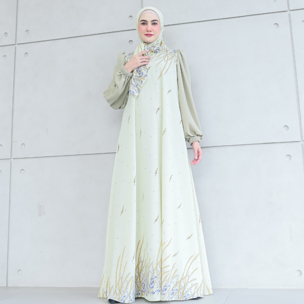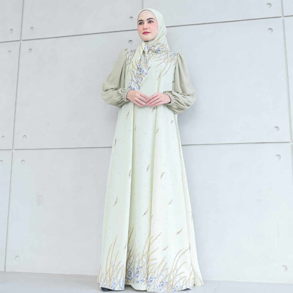 NAISHA SET SERIES 24 & 27 PASHMINA SEGIEMPAT BAHAN CERUTI MOTIF PRINTING FULL FURING GAMIS WANITA ELEGAN TANGAN BALON