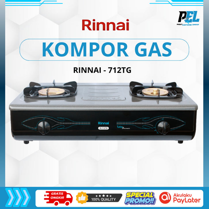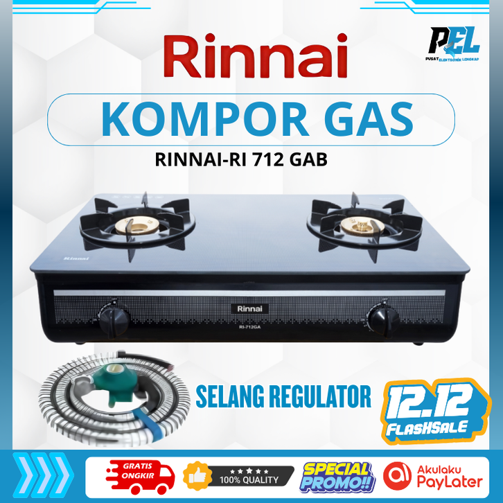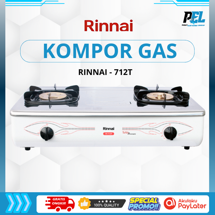 Kompor Gas Rinnai 2 Tungku Turbo Murah Series 712 GAB + Selang Regulator Best Seller Berkualitas Official Store