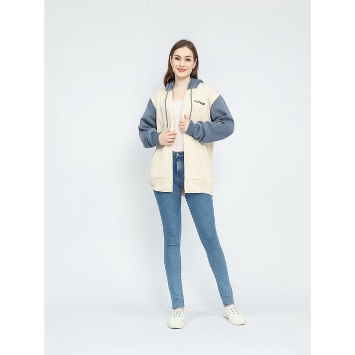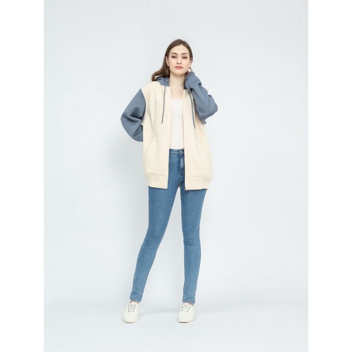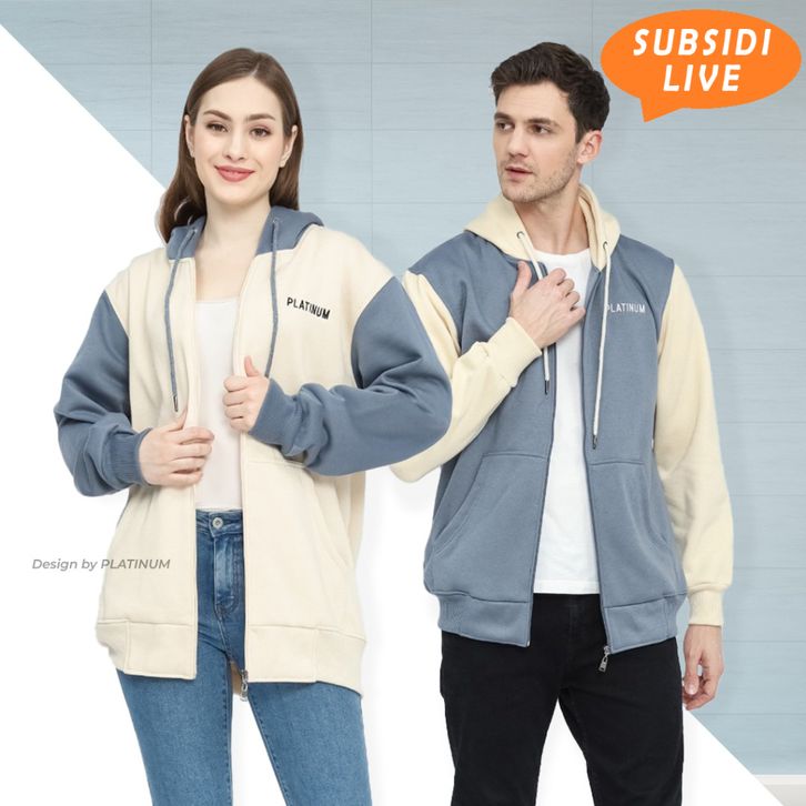 Hoodie Pria Wanita Resleting Zipper Warna Kombinasi Jaket Sweater Couple Kekinian Size Jumbo Bahan Flecce Berkualitas