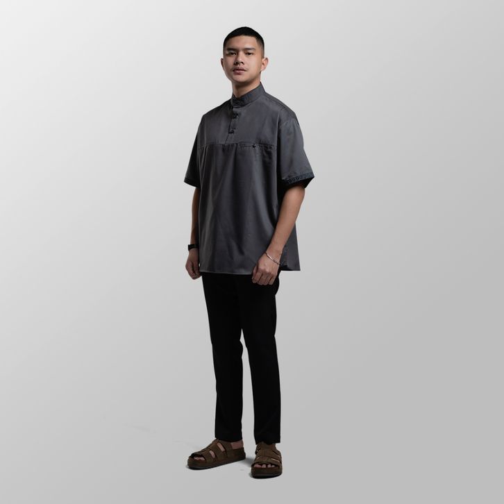 FROYEMUL - Rayie | Kemeja Pria Koko Abu-abu FREE ONGKIR