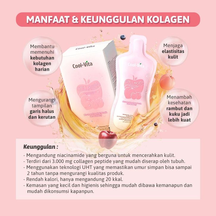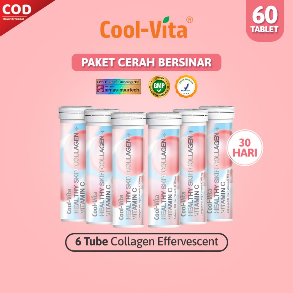 Coolvita Collagen Paket Cerah Bersinar 6 Botol Kolagen +1 Botol Chewable Orange FREE 1 Pouch Slimkeep Fiber Detox Drink