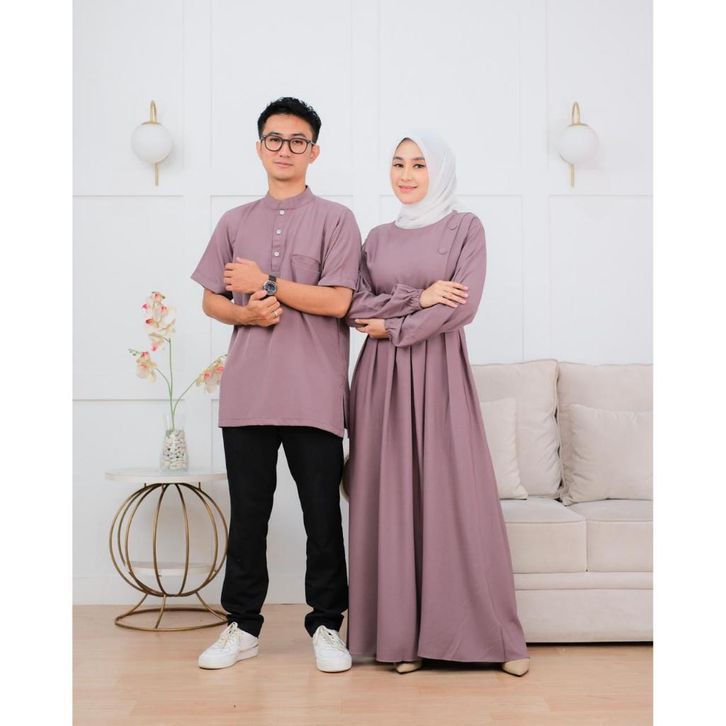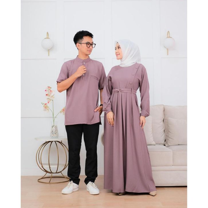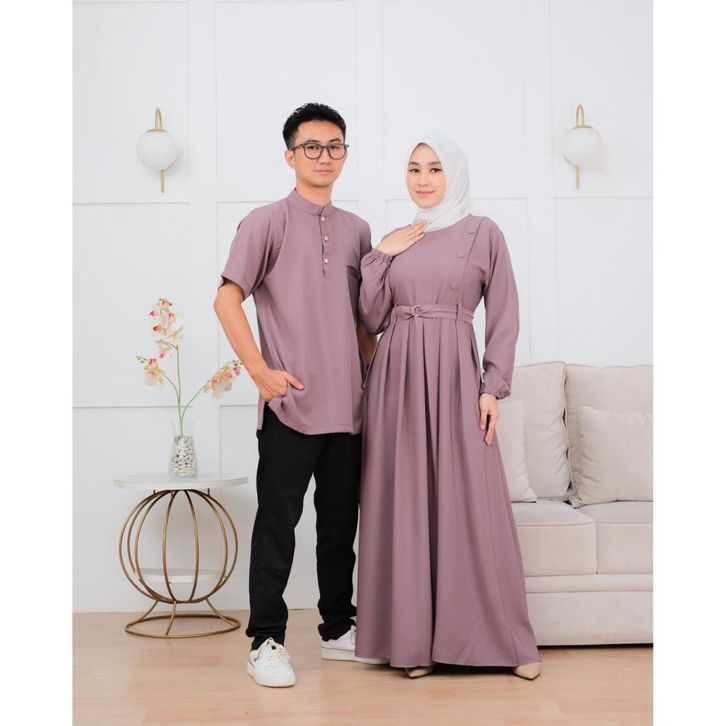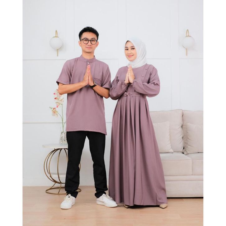 Arumi Sarimbit Couple Suami Istri 2024 Baju Dress Keluarga Set Couple Sarimbit Lebaran Kemeja Pasangan Keluarga
