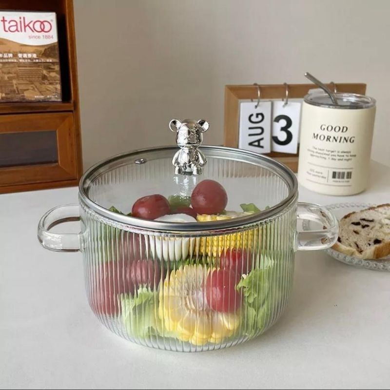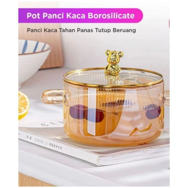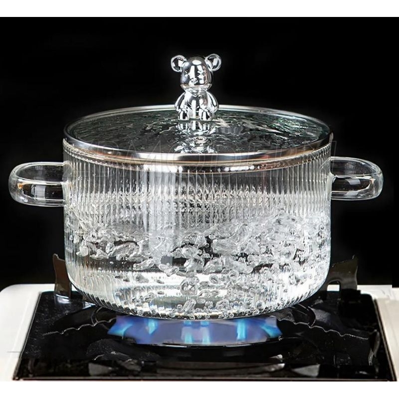 PANCI KACA TRANSPARAN TAHAN PANAS / BOROSILICATE GLASS POT