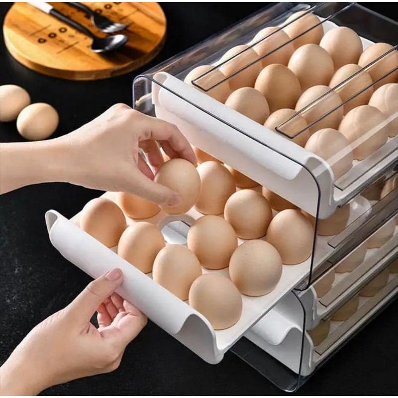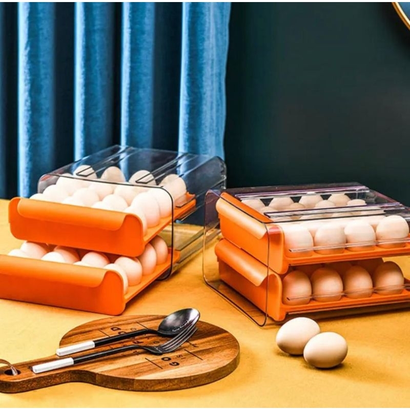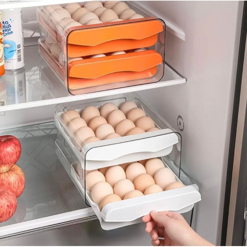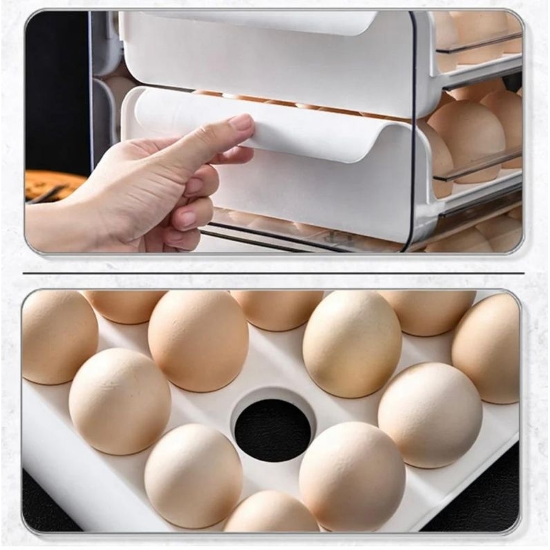 TEMPAT TELUR 2 TINGKAT PUTIH / WADAH PENYIMPANAN TELUR ORGANIZER AESTHETIC / RAK TELUR 2 SUSUN