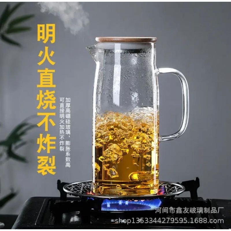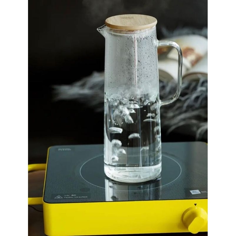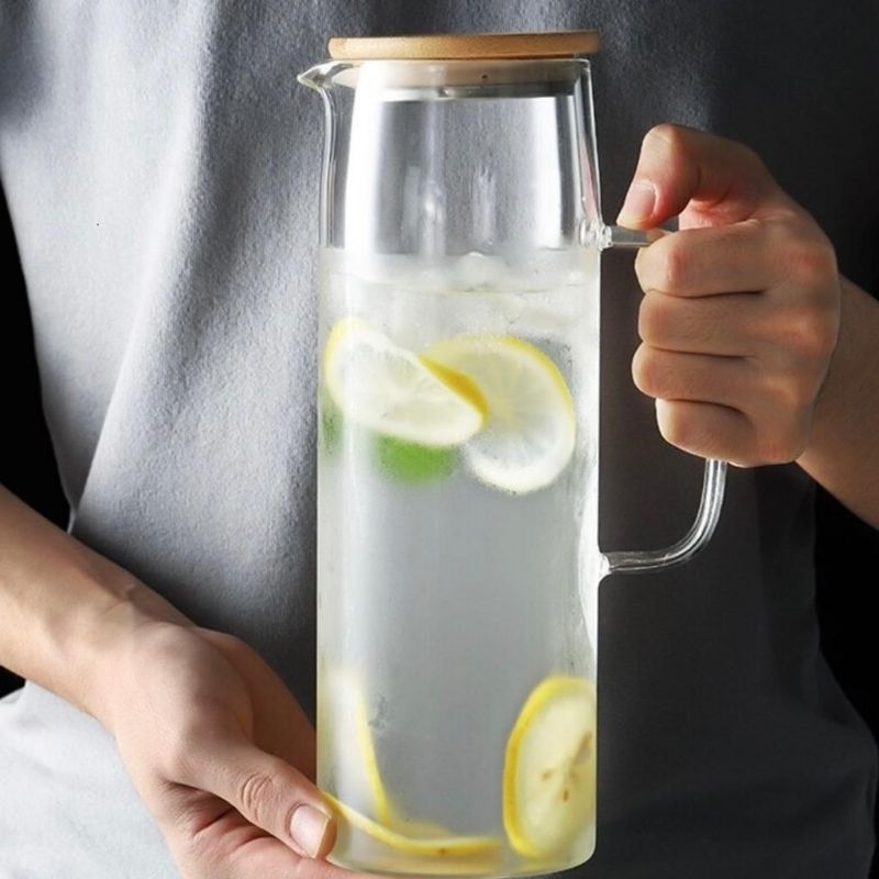 TEKO KACA TUTUP KAYU / TEKO PITCHER AESTHETIC MINIMALIS / WATER JUG BAMBOO LID
