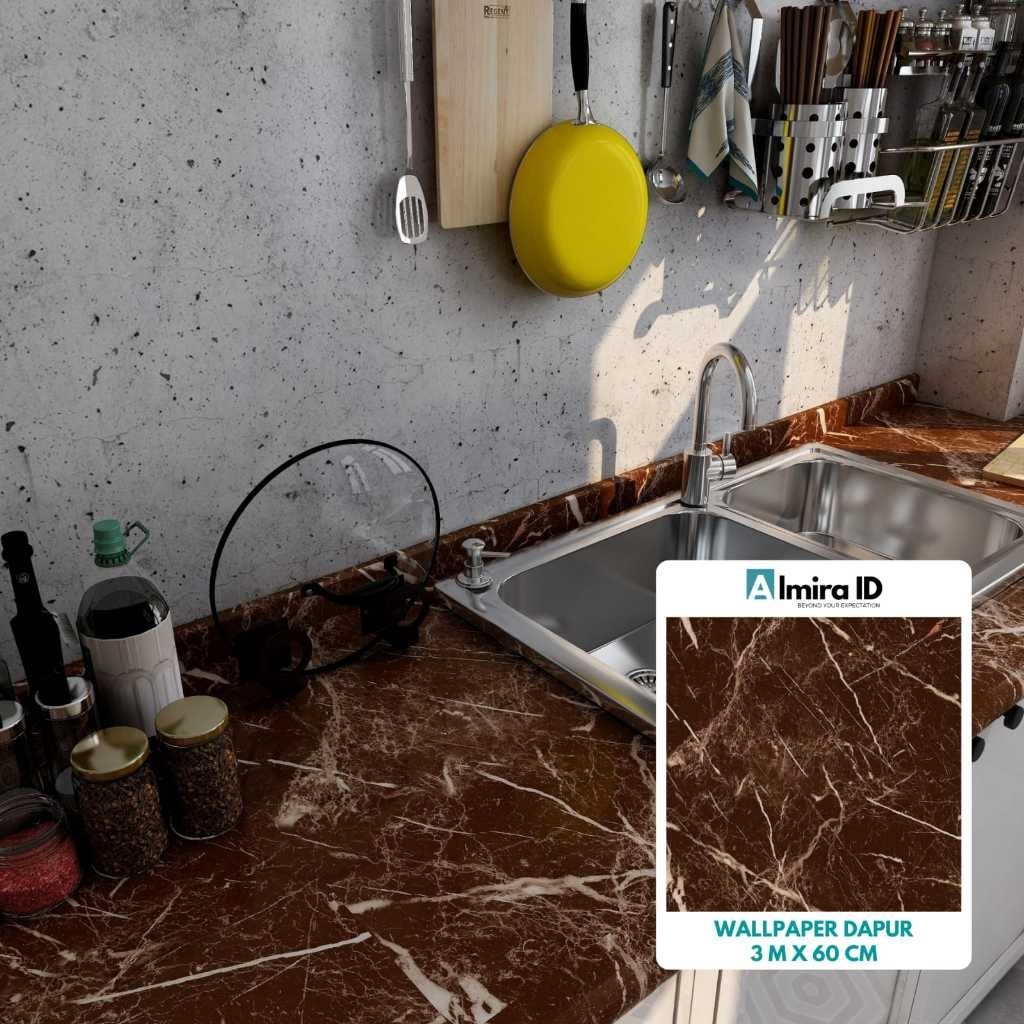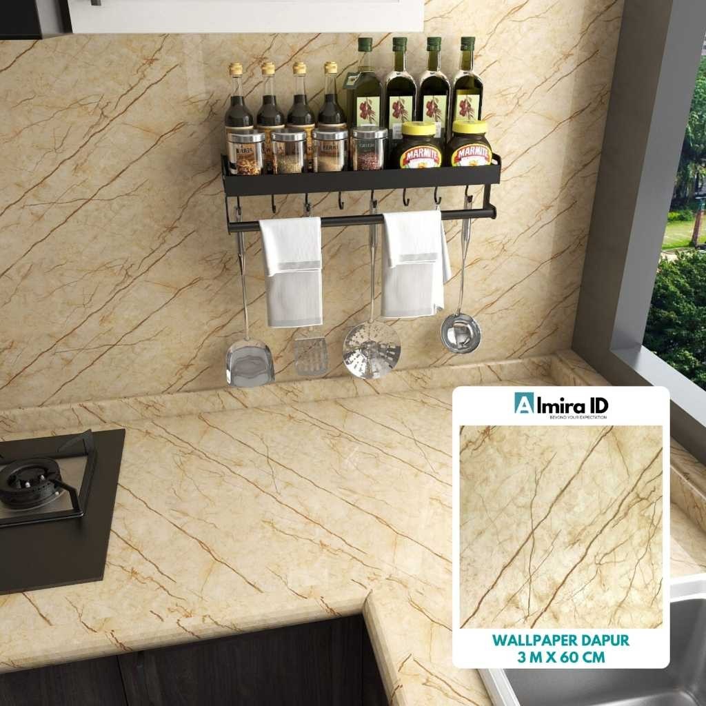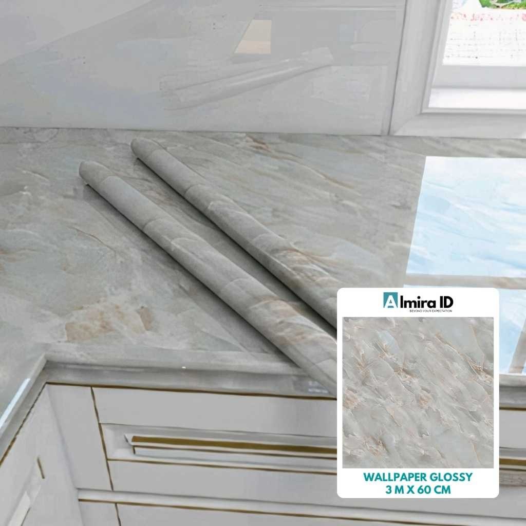 WALLPAPER GLOSSY MARMER DAPUR MEJA FURNITURE 3 M X 60 CM GLOSSI KITCHEN SET WALPAPER KAYU PINTU STIKER STICKER ALMIRA
