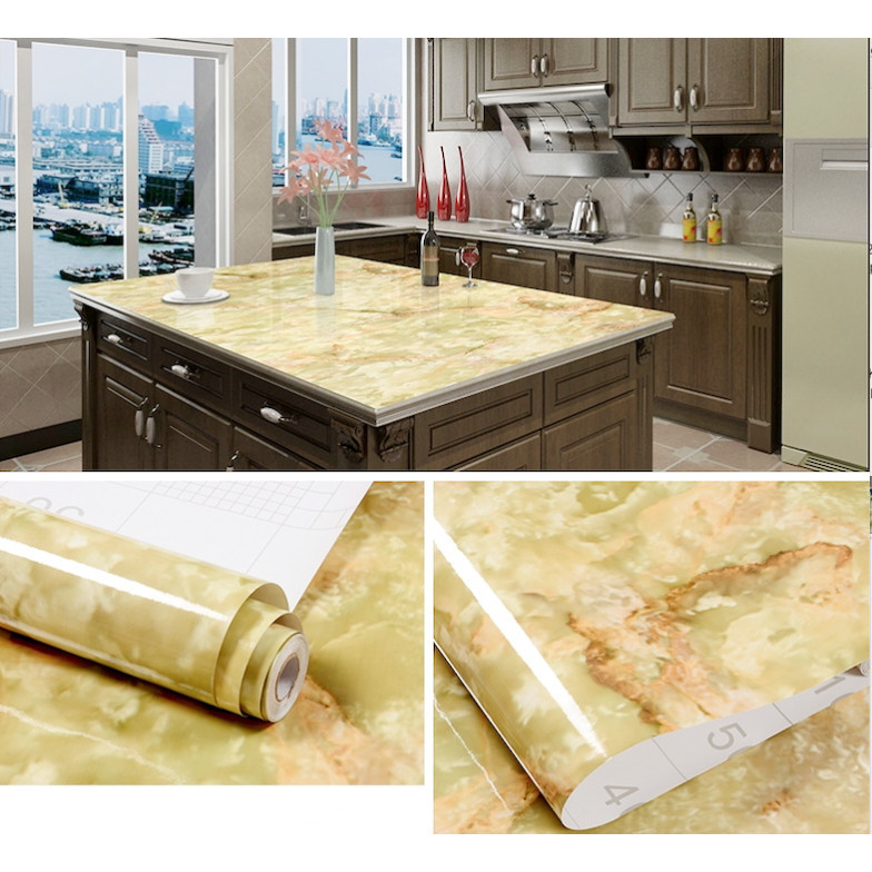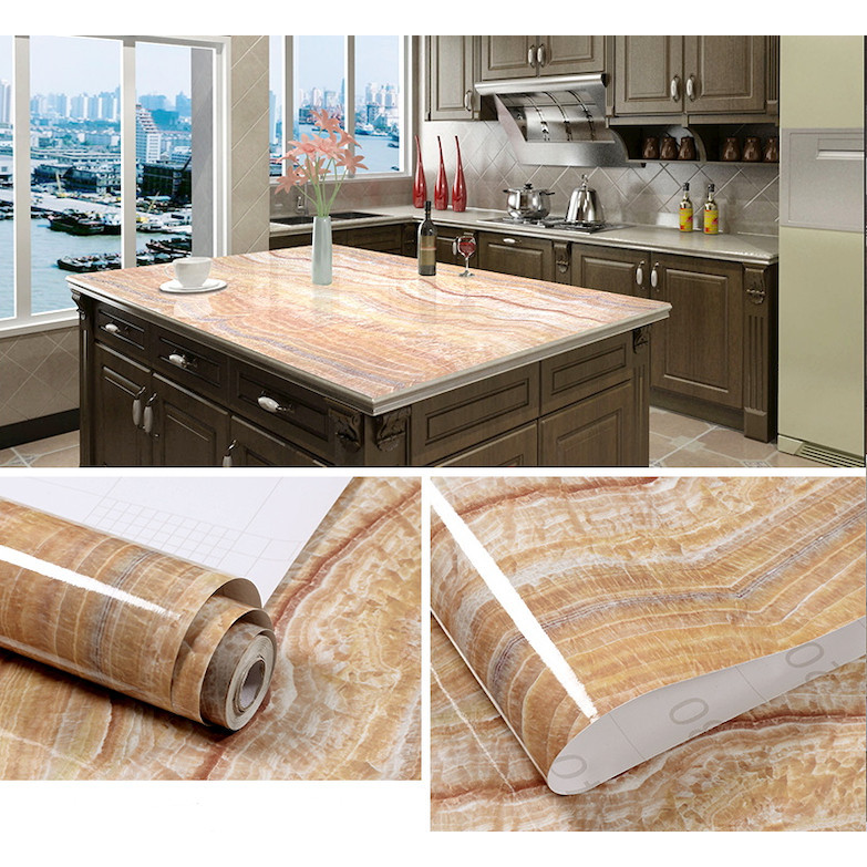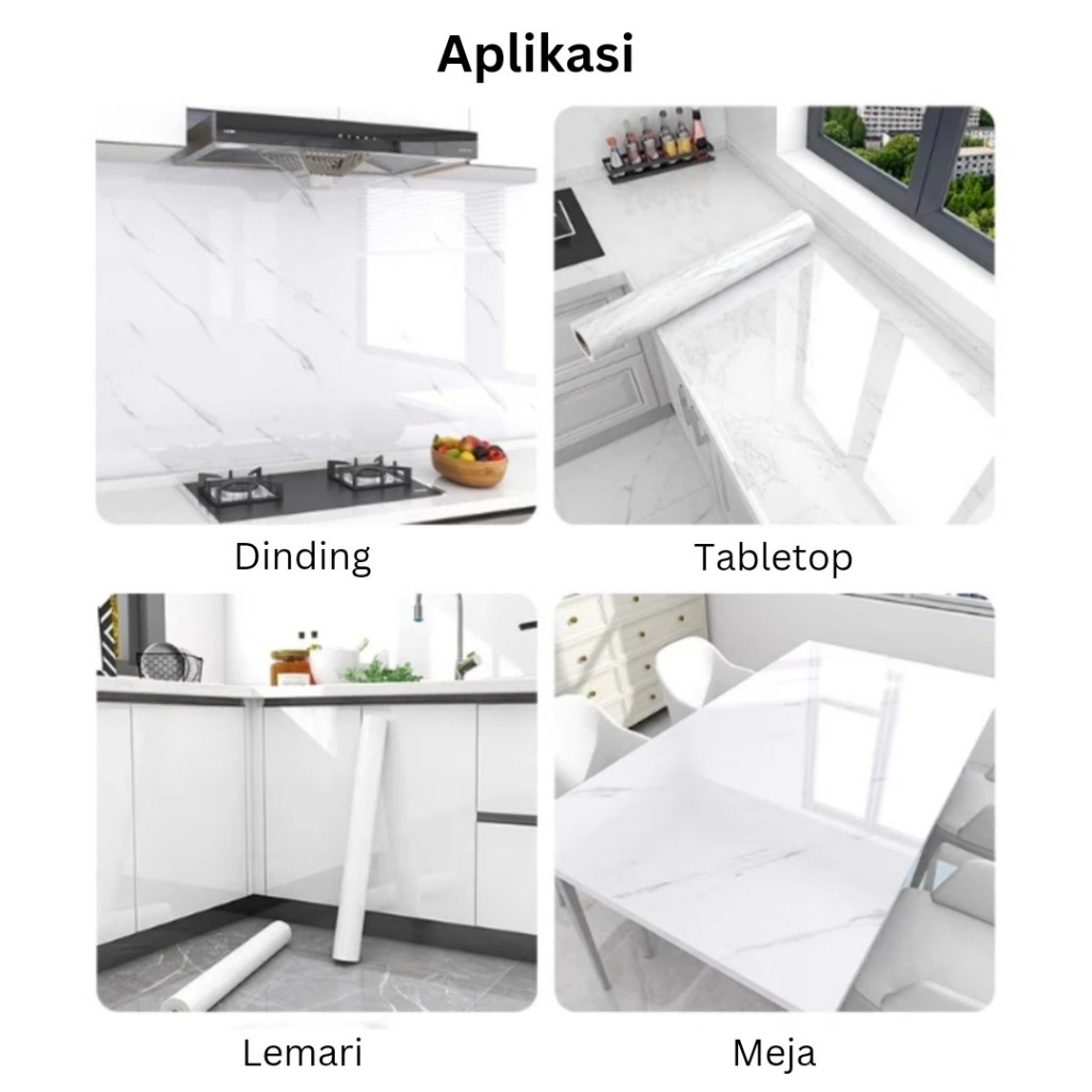 WALLPAPER FURNITURE GLOSSY POLYCHROME MARMER DAPUR 3Mx60CM MEJA GLOSSI KITCHEN SET WALPAPER KAYU PINTU STIKER STICKER