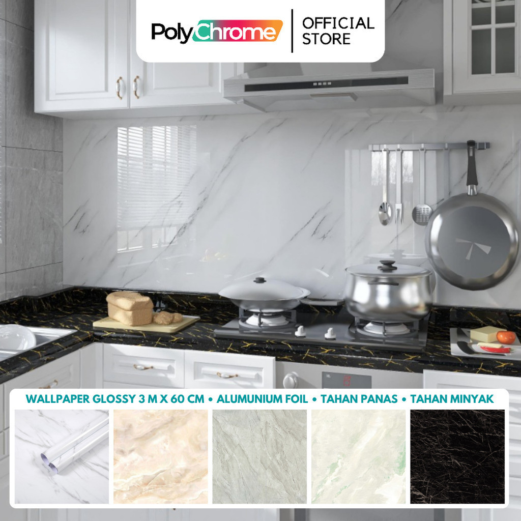 WALLPAPER GLOSSY MARMER DAPUR MEJA FURNITURE 3 M X 60 CM GLOSSI KITCHEN WALPAPER POLYCHROME PINTU STIKER STICKER ALMIRA