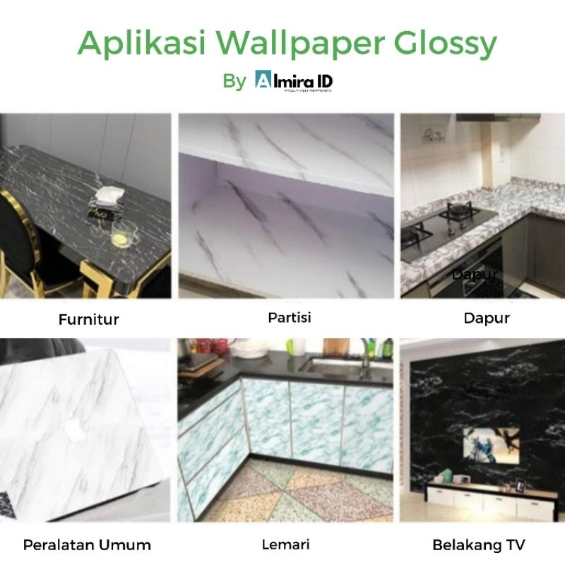 WALLPAPER GLOSSY MARMER DAPUR MEJA FURNITURE 3 M X 60 CM GLOSSI KITCHEN SET WALPAPER KAYU PINTU STIKER STICKER ALMIRA