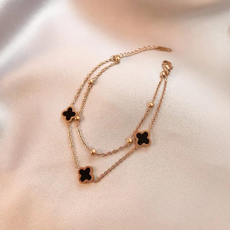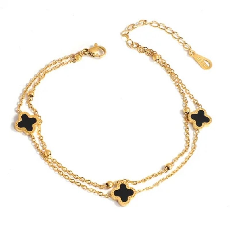 GELANG TITANIUM MATA HITAM FASHION CLOVER 2 LAYER GELANG WANITA KOREA