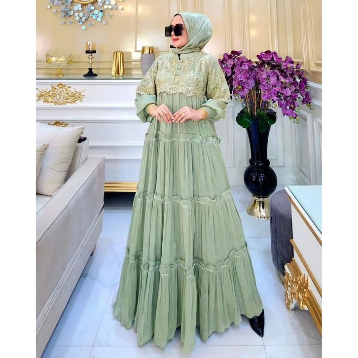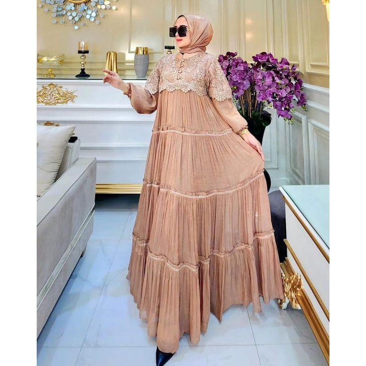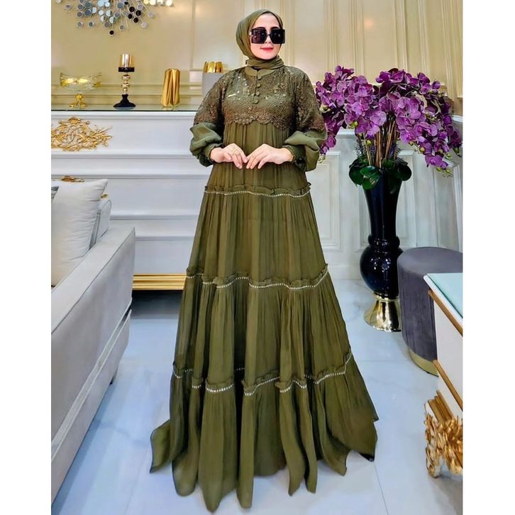 VALLINA OUTFIT - JELITA MAXY DRESS SHIMER BRUKAT GAMIS MUSLIM LEBARAN GAUN PESTA WANITA KONDANGAN KEKINIAN TERBARU MURAH