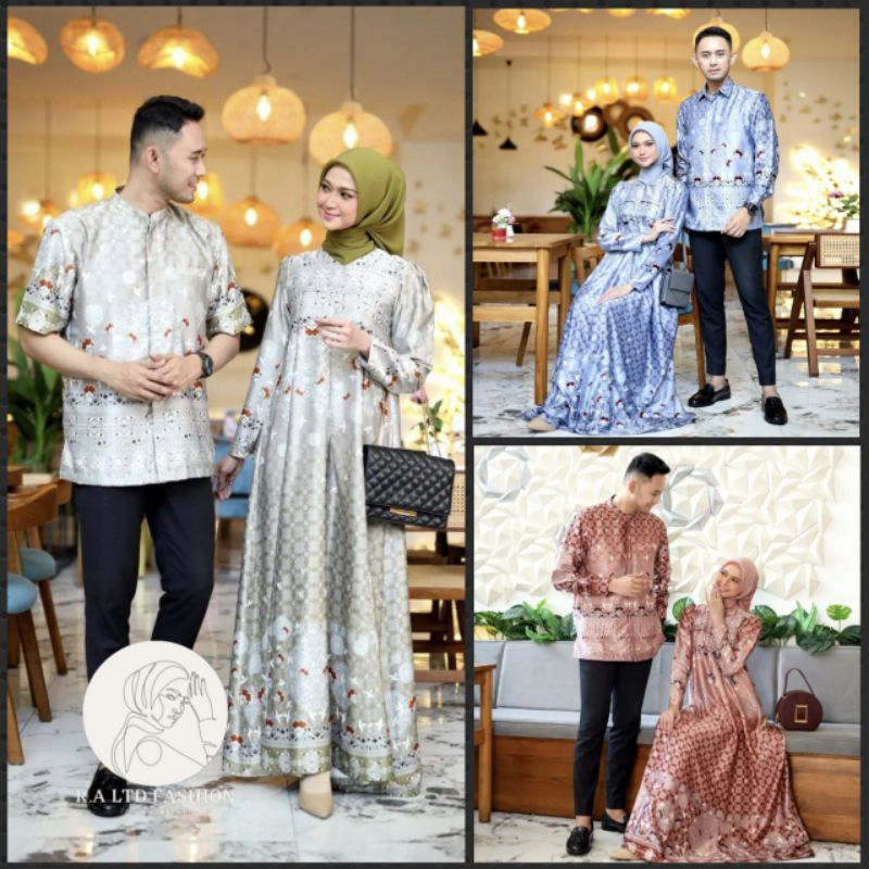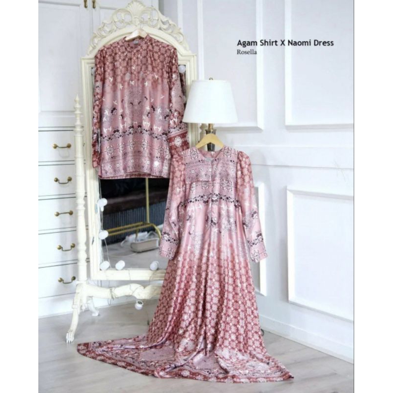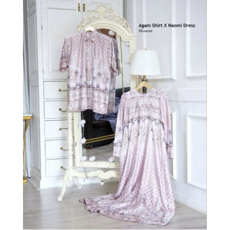 COUPLE BAJU MUSLIM PASANGAN GAMIS DAN KEMEJA PRIA KONDANGAN KEKINIAN MAXMARA DRESS BUSUI MOTIF NAOMI COUPLE