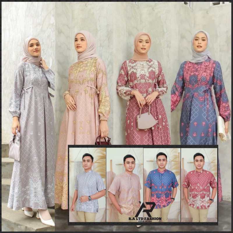 COUPLE BAJU MUSLIM PASANGAN GAMIS DAN KEMEJA PRIA KONDANGAN KEKINIAN BAHAN SILKY DRESS