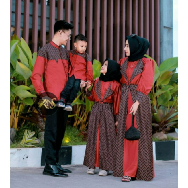 SARIMBIT KELUARGA 2024 LEBARAN MARINA RAYA SERIES WARNA MAROON BAJU COUPLE MUSLIM PASANGAN SUAMI ISTRI ANAK