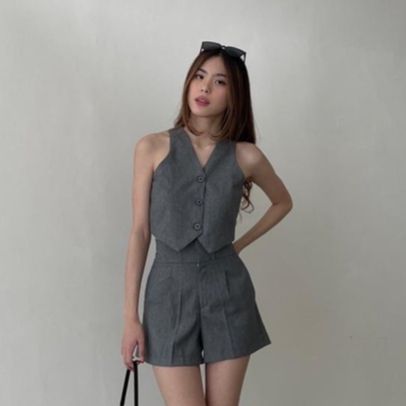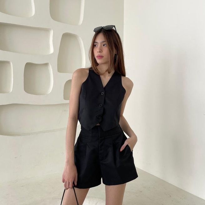 Vest Polos Wanita Rompi Crop Bahan Katun Premium Basic Top V-neck Terlaris