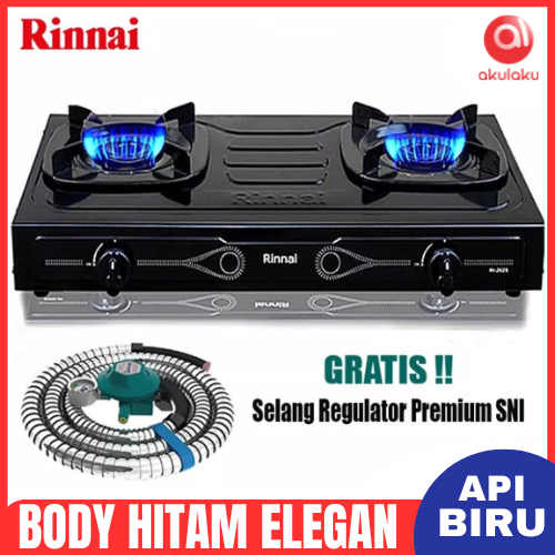 KOMPOR GAS 2 TUNGKU RINNAI RI 202S GRATIS SELANG REGULATOR PAKET REGULATOR KOMPOR GAS SNI API BIRU