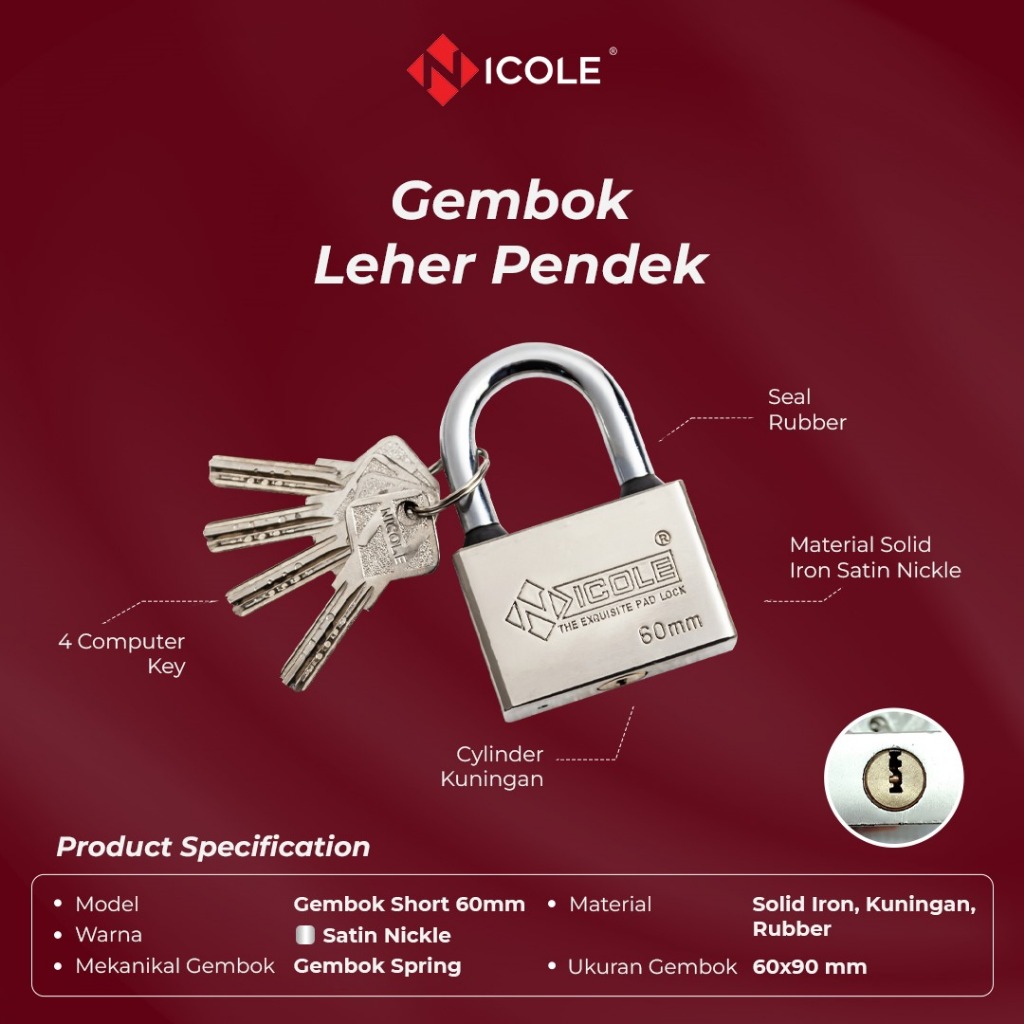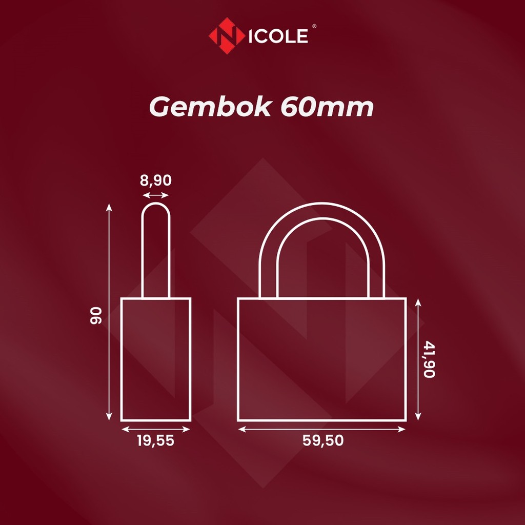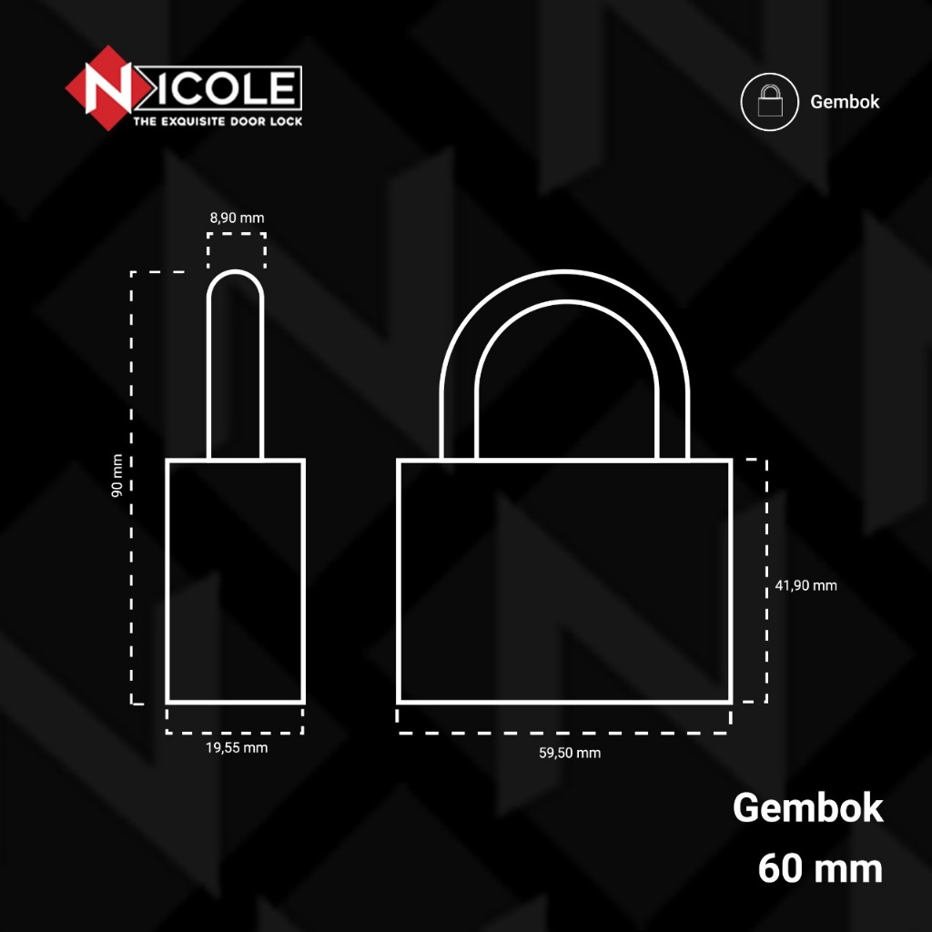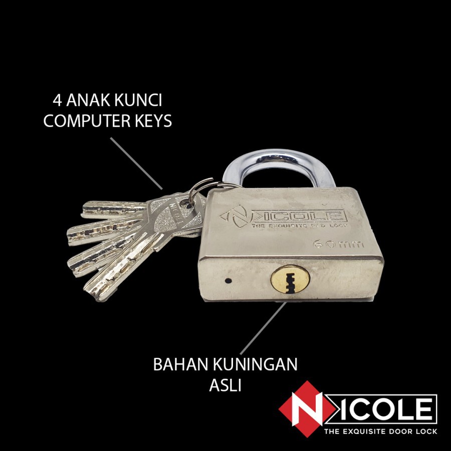 Nicole Gembok Pintu Rumah Besi / Gembok Pagar / Padlock 60mm