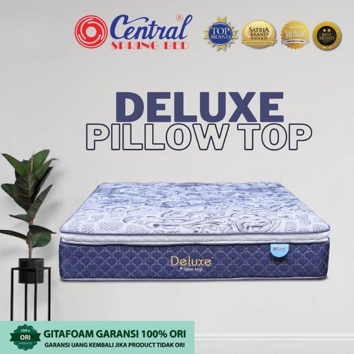 KASUR SPRINGBED CENTRAL DELUXE PILLOW TOP WARNA BIRU SIZE TEBAL KASUR 32 CM SEMARANG FREE ONGKIR