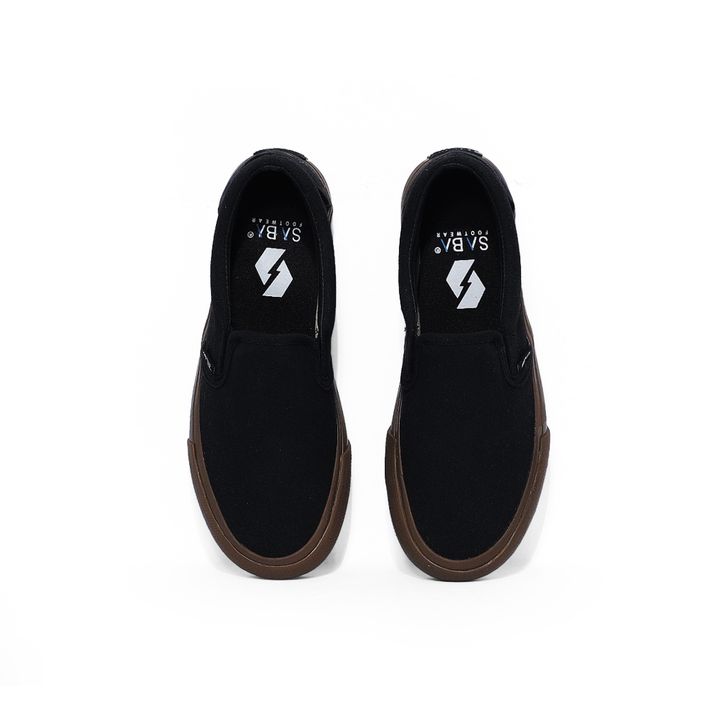 Saba Vintage Slip On Black Gum Sepatu Sneakers Casual Pria Sepatu Slip On Pria Sepatu Kuliah Kekinian