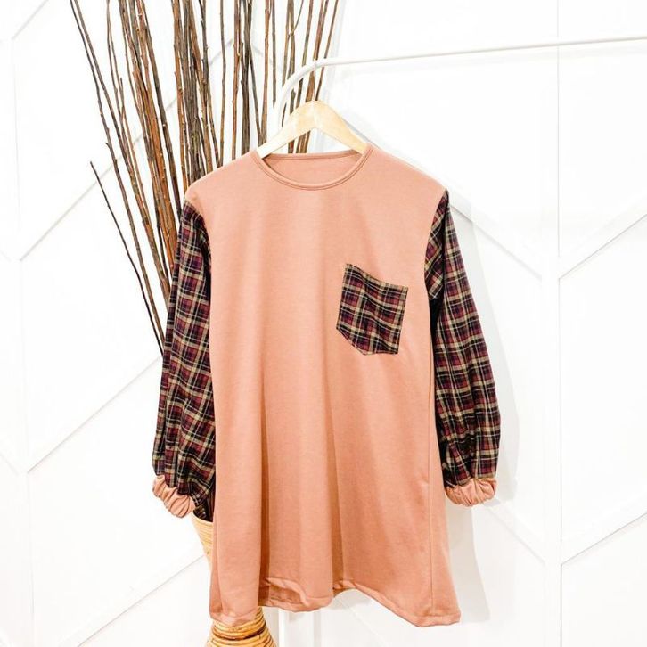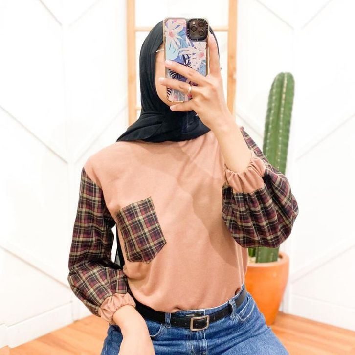 Atasan Blouse Stylish adem Wanita Baju Perempuan Lengan Panjang Motif Kotak Modis Casual Kerja Kuliah Bahan Babby Terry