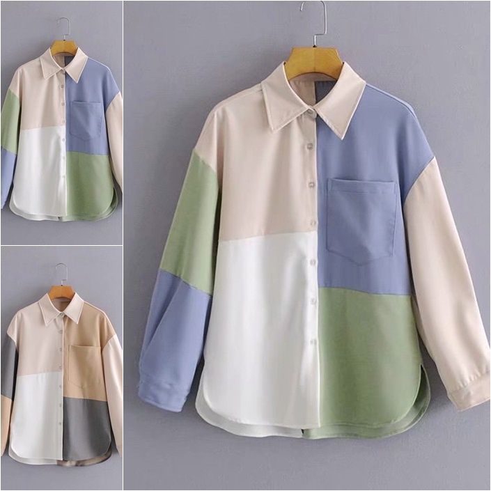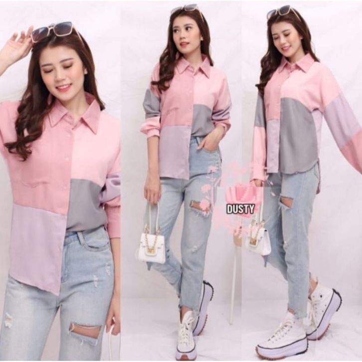 Kemeja Wanita Stylish Casual Thalia Shirt Mosscrepe Warna Kombinasi Atasan Hem Perempuan Kekinian Lengan Panjang Kerja