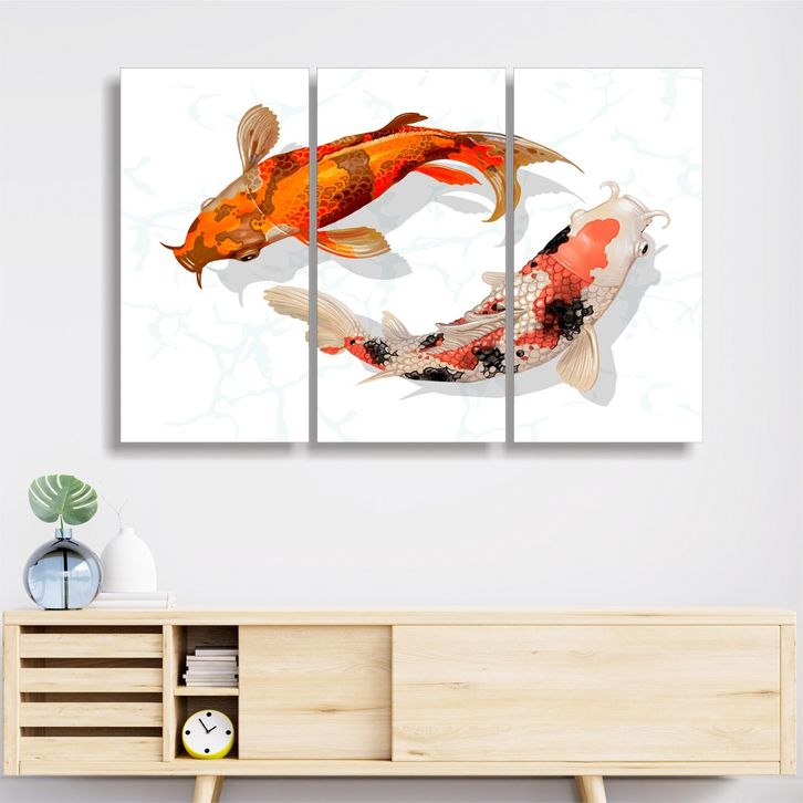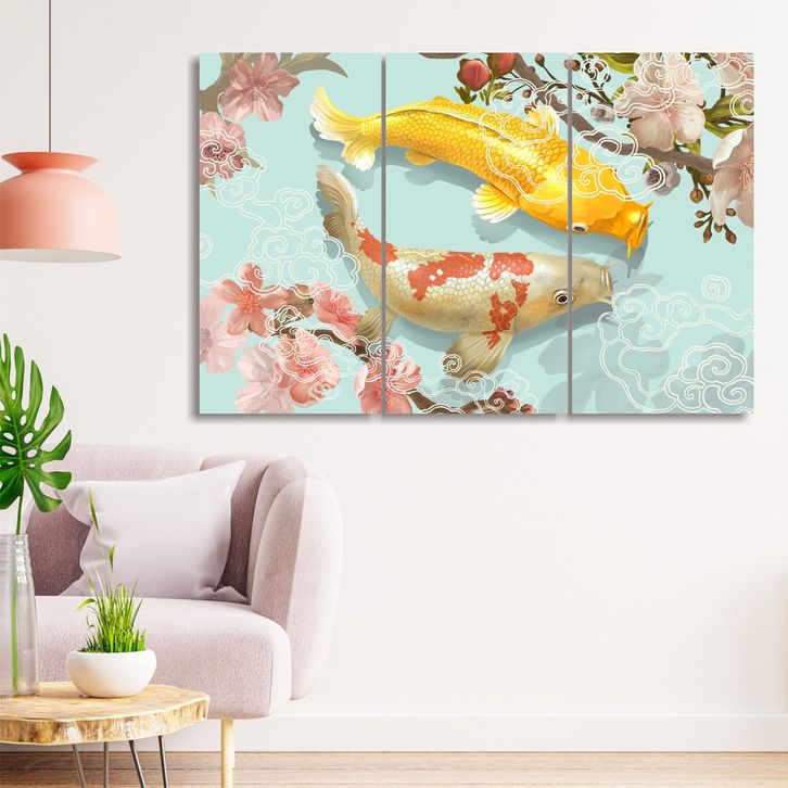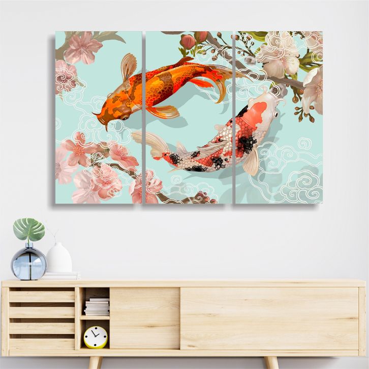 Hiasan Dekorasi Estetic indah Poster Kayu Multipanel Ikan Koi Jepang Sticker Glossy Minimalis Bahan Kayu Berkualitas