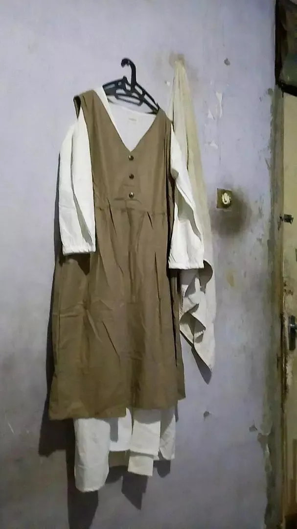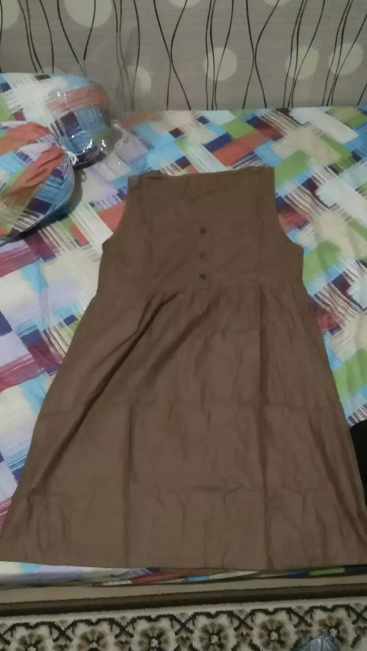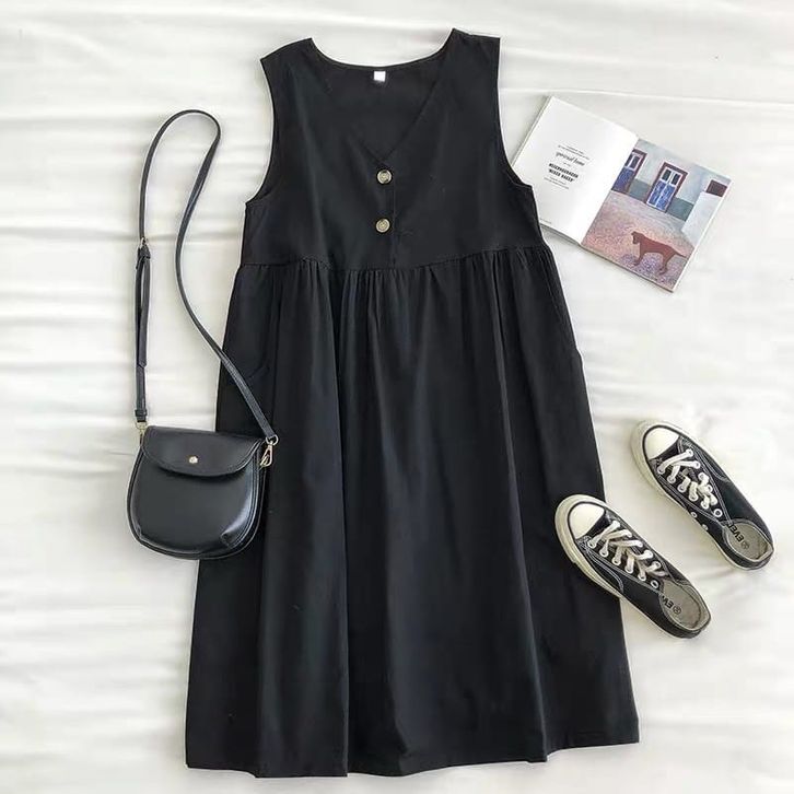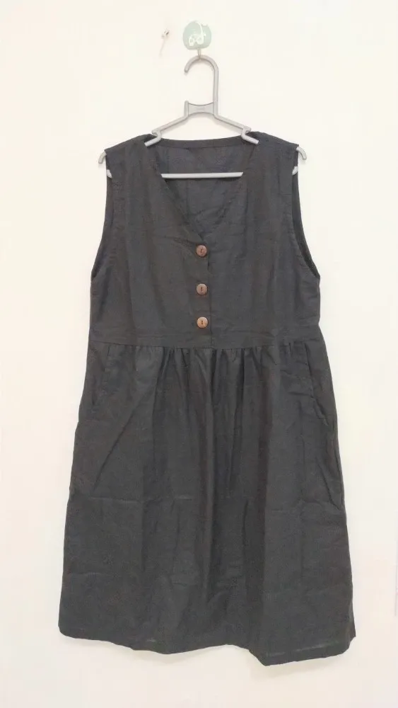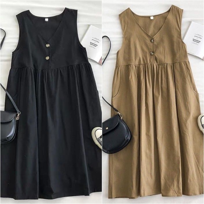 Overall Dress Pendek Wanita Inner Linen Perempuan Polos V Neck Kekinian Black Mocca Ukuran Fit To L