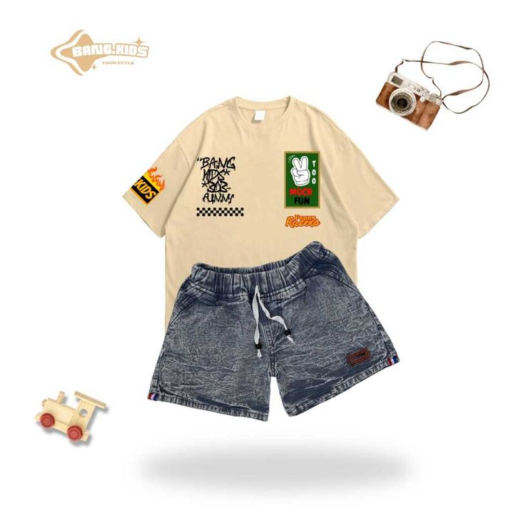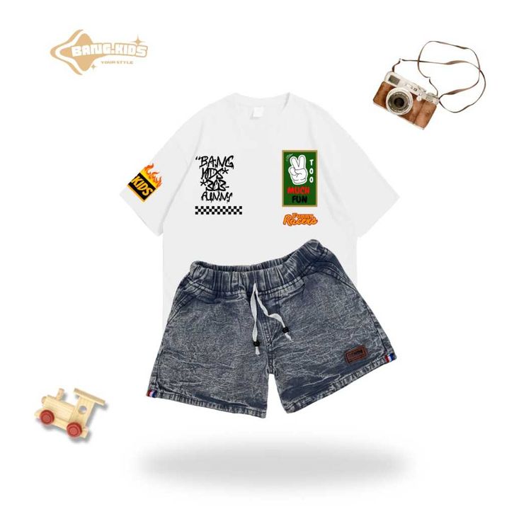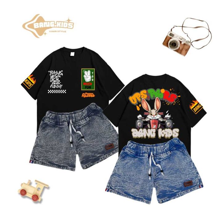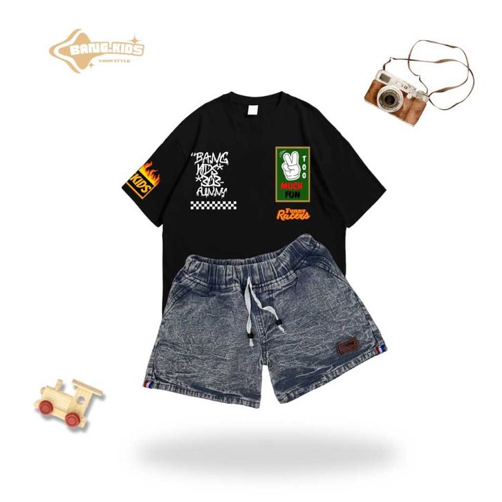 Setelan Anak Laki-laki Terbaru Baju Setelan Anak Cowok Usia 1-8 Tahun Cotton Combed 30s Celana Jeans Kekinian Murah